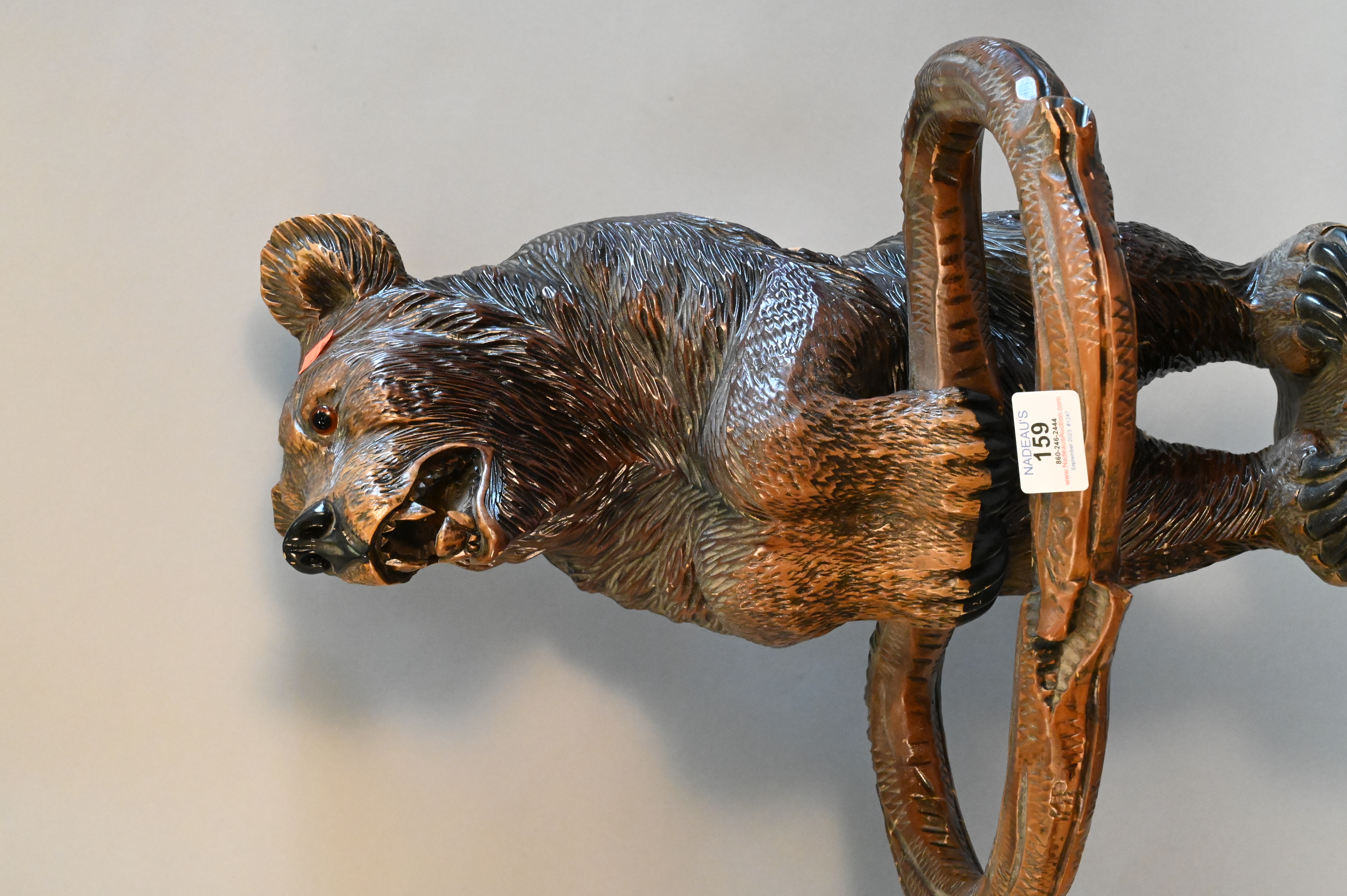 Carved Bear Umbrella Holder, black forest style, height 29 inches.