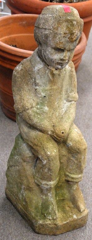 Cement figure of a boy. Provenance: property from a home in Rockville Center, New York which was decorated by Iris Apfel.