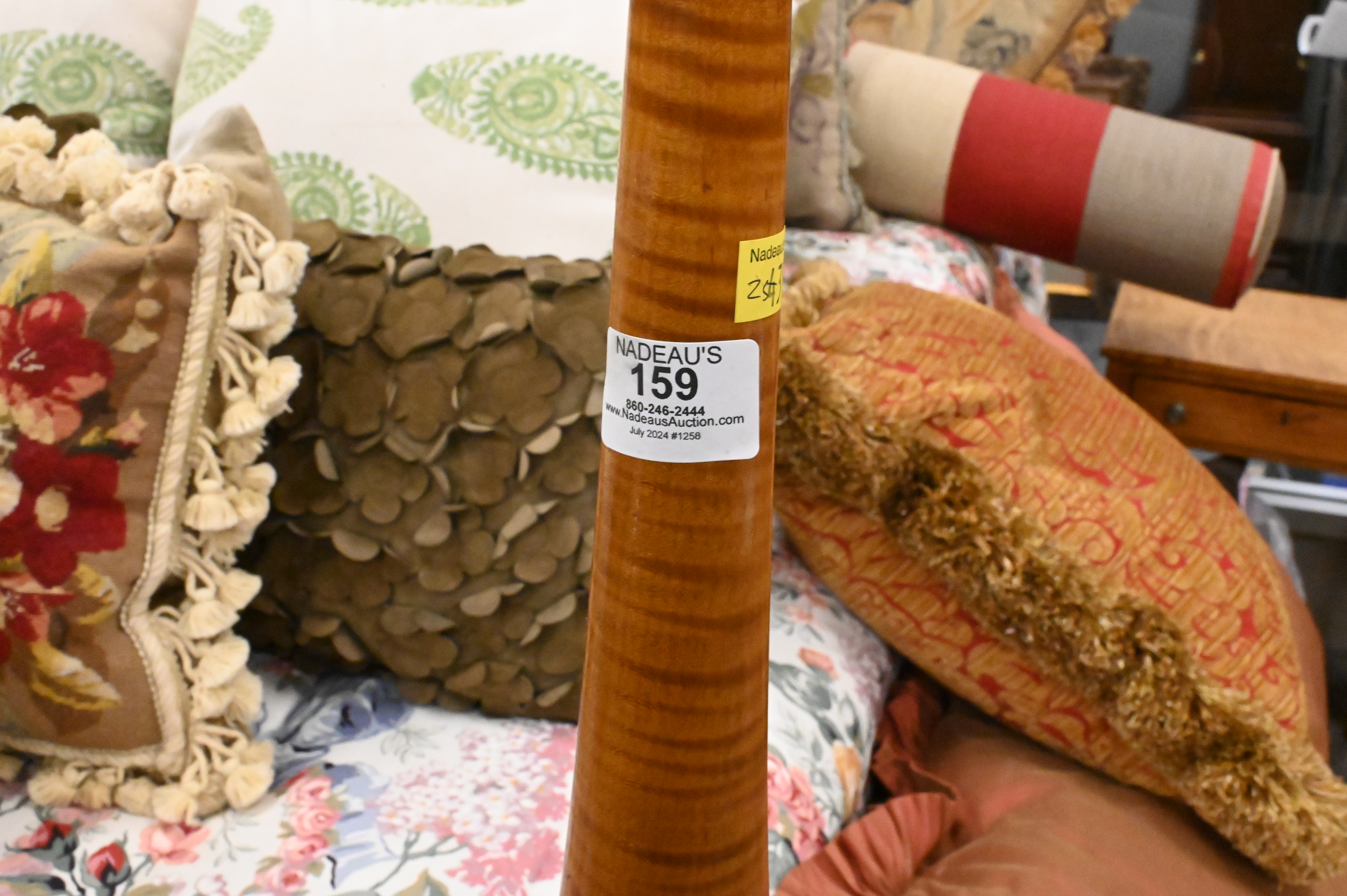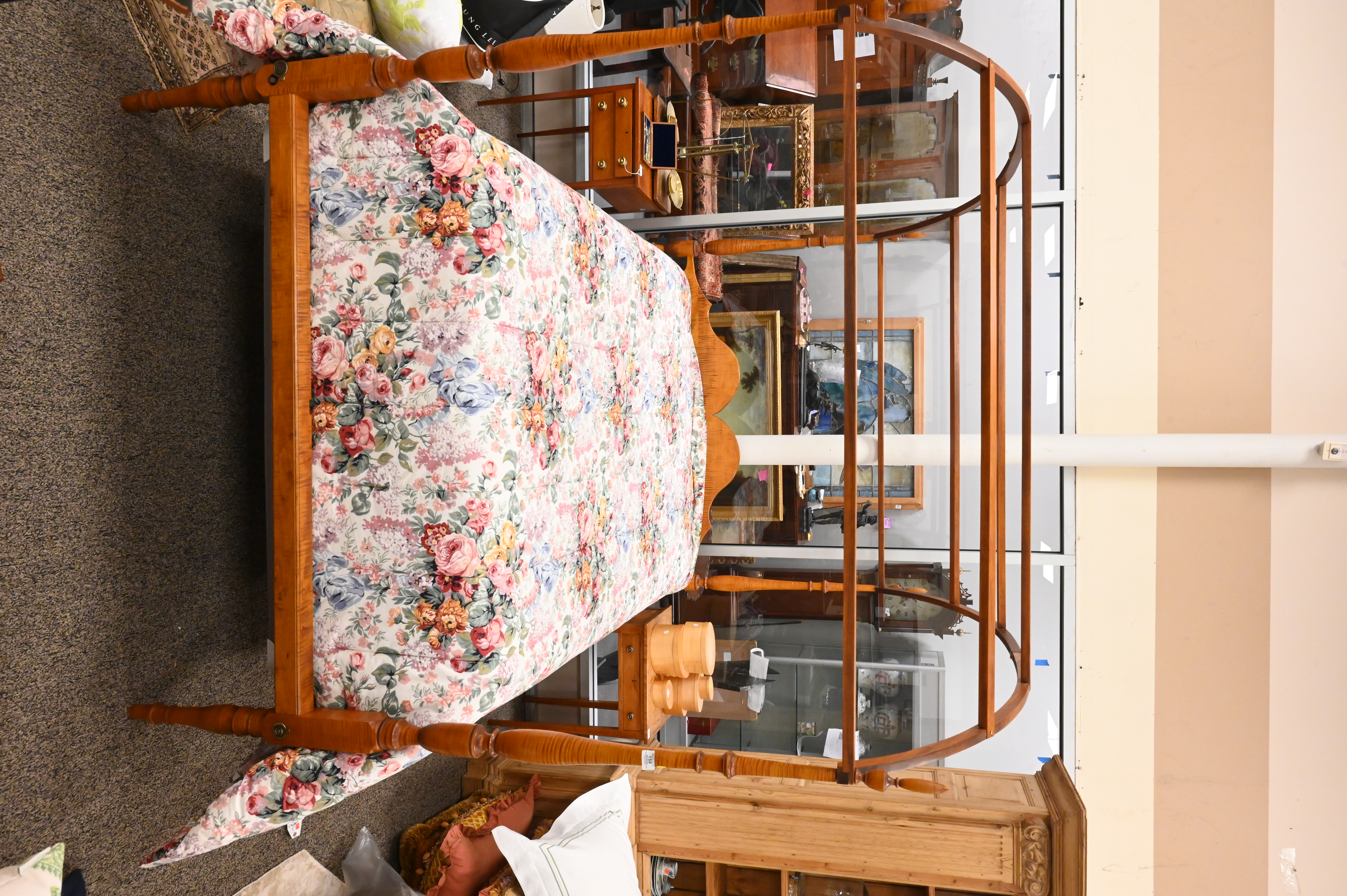 Lot 159: D.R. Dimes Four Post Tiger Maple Queen Size Bed