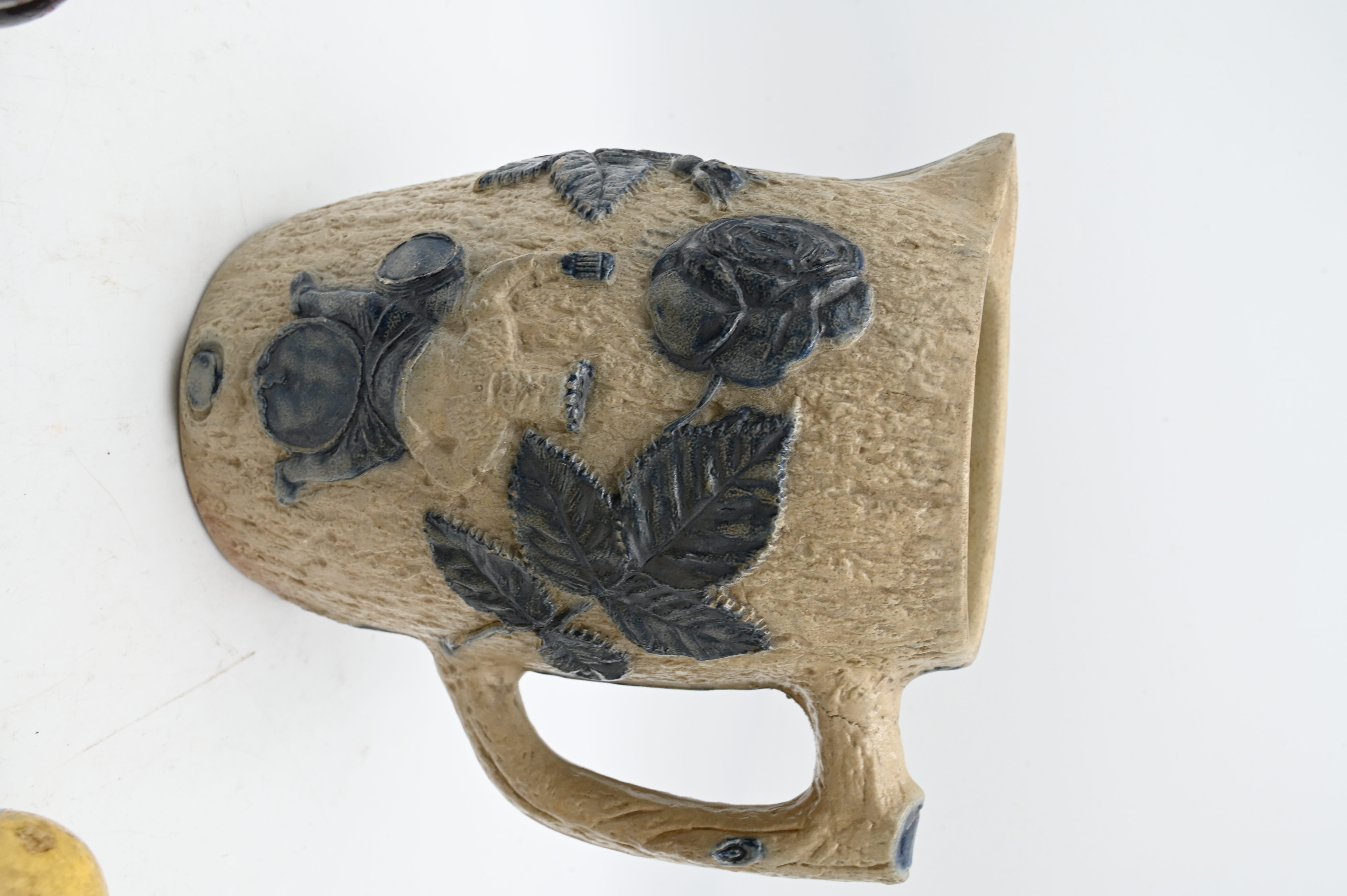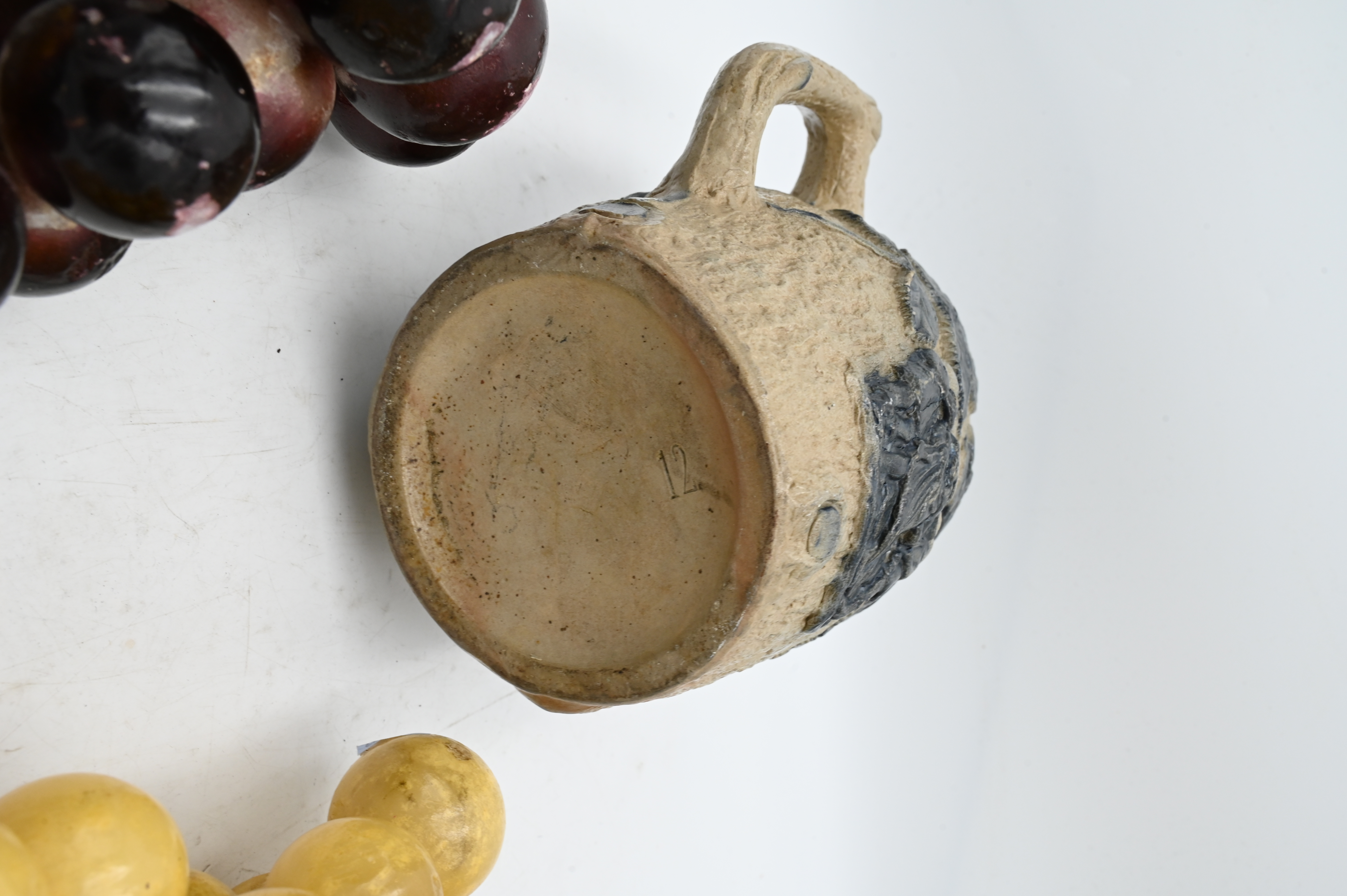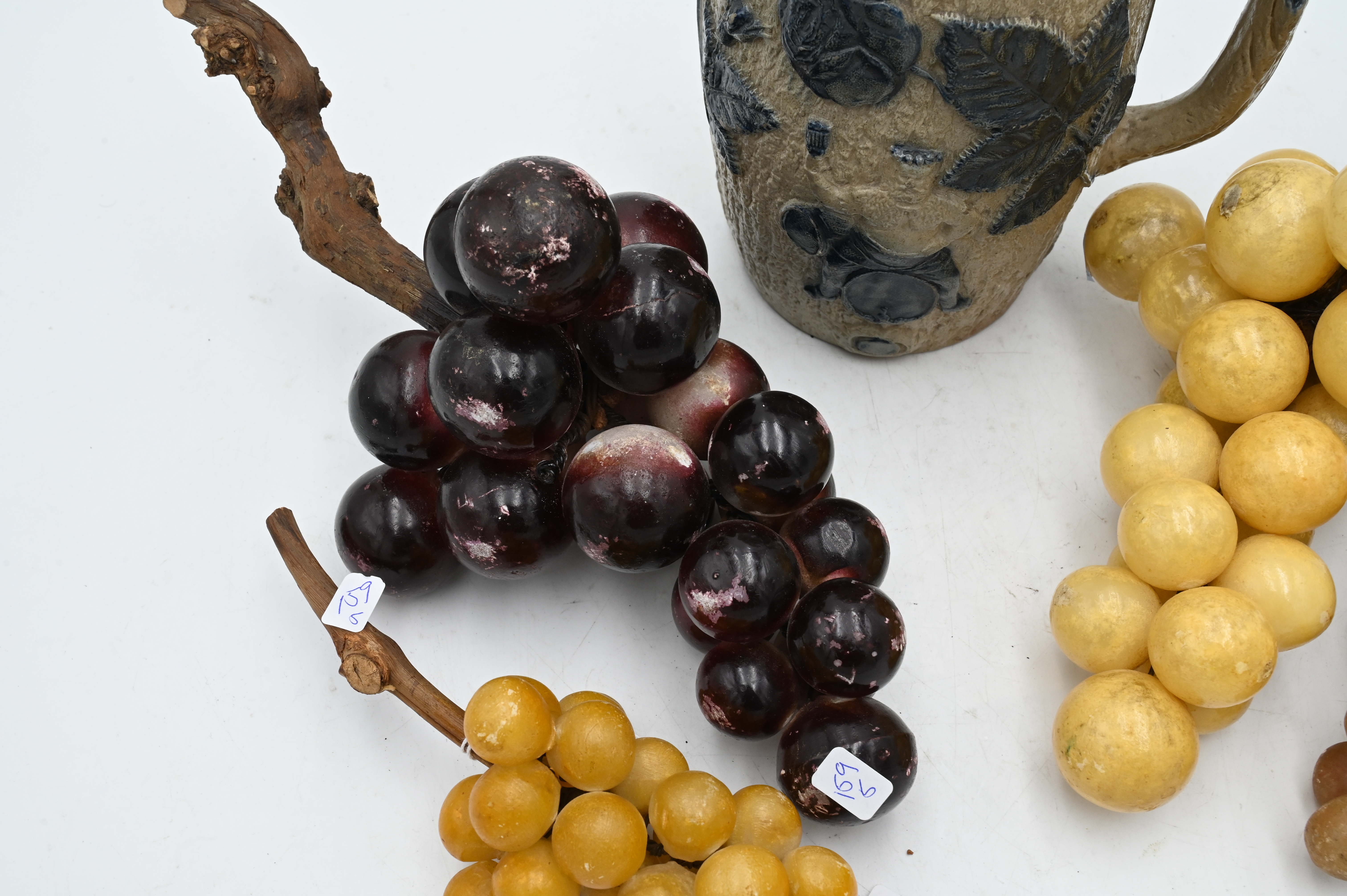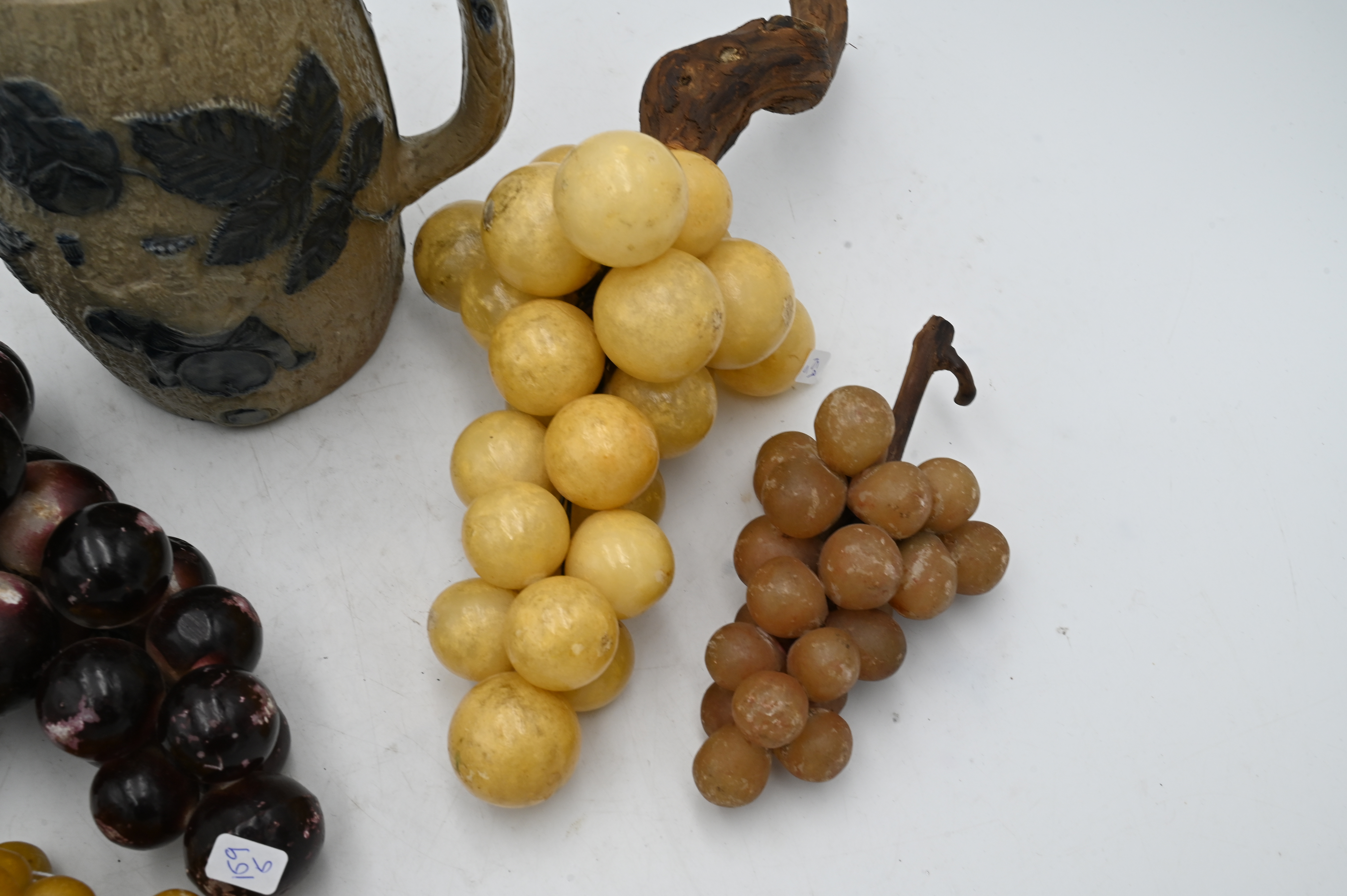 to include four Italian style marble/ alabaster grape clusters, along with whites of Utica pitcher having rose motif