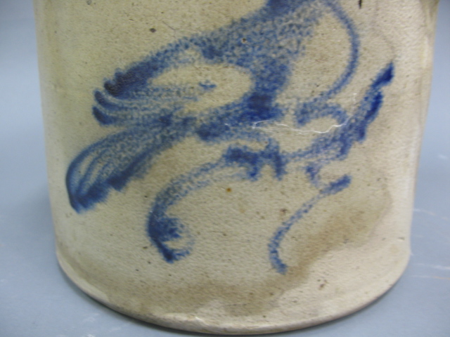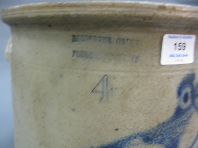 Four gallon Stoneware Crock with cobalt blue, bird, marked Riedenger & Caire, N.Y.