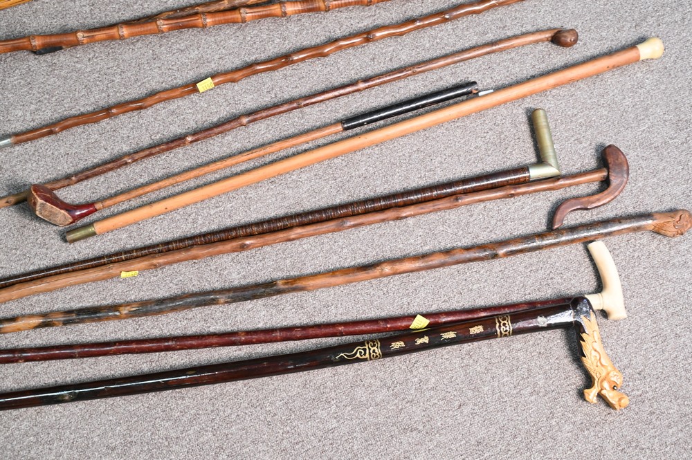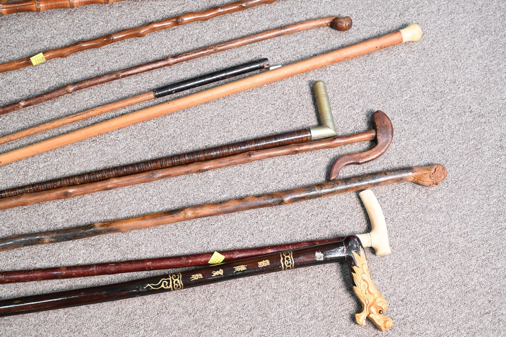Group of Canes and Walking Sticks, to include horn, carved wood, etc.
