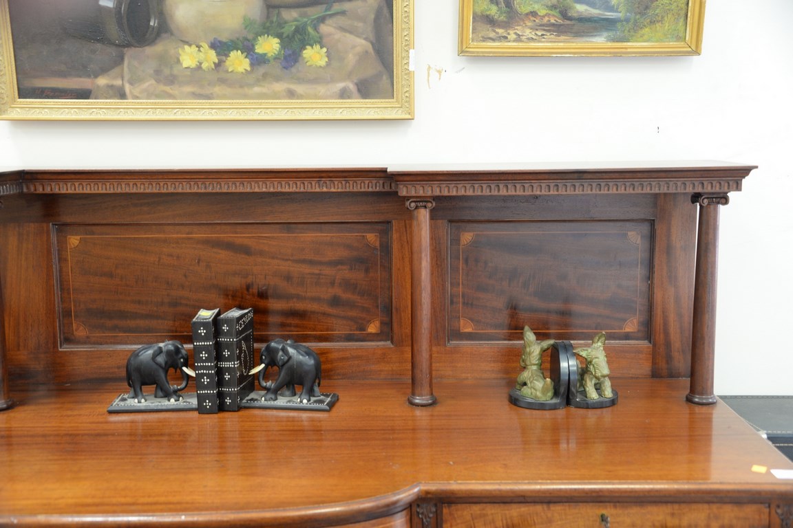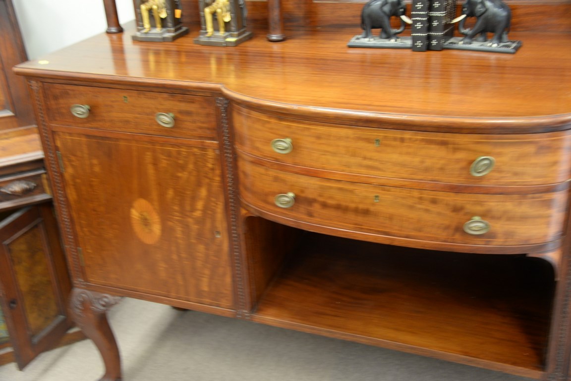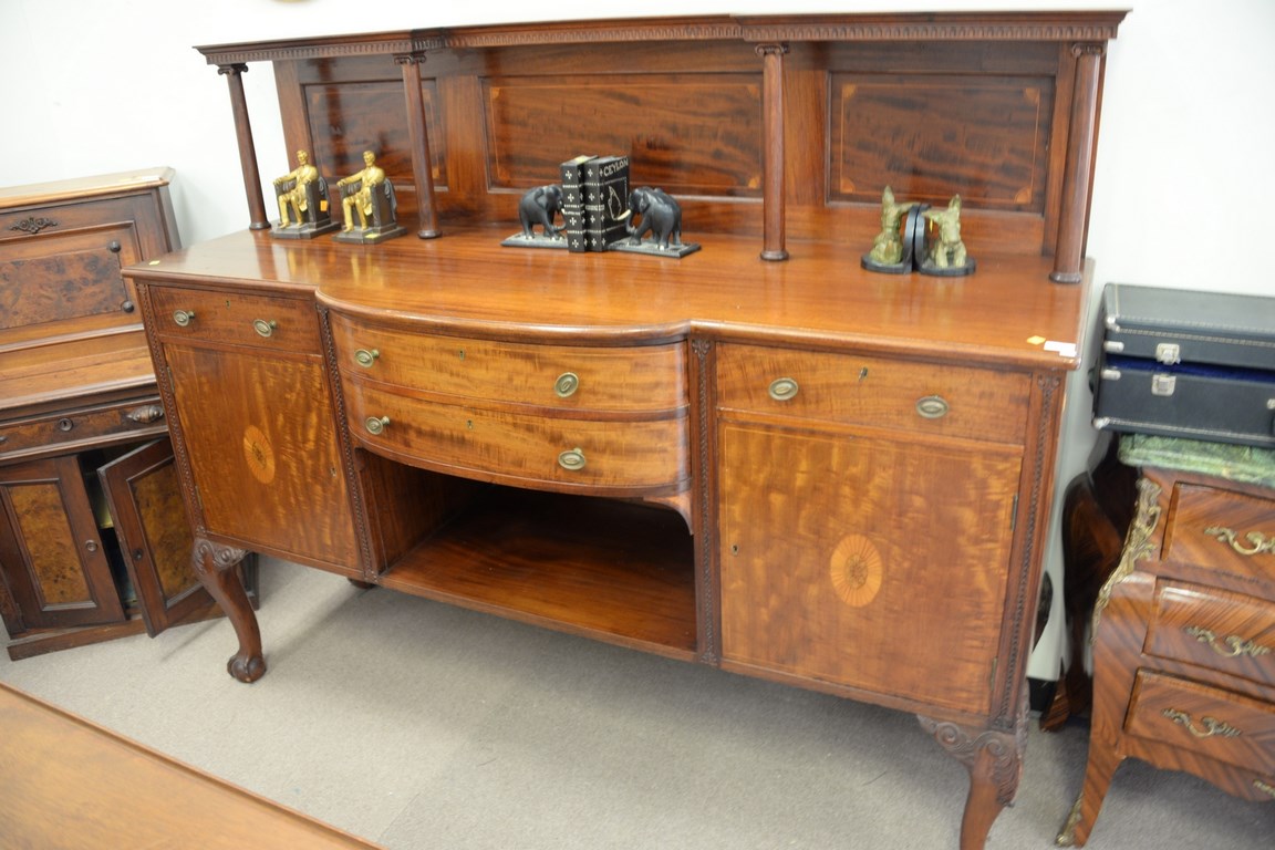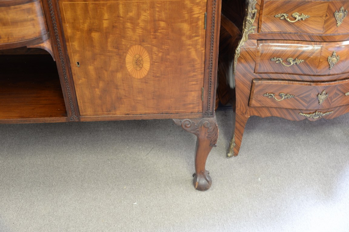 Lot 159: Mahogany sideboard with inlaid back shelf on ball and claw feet, ht. 58 in. wd. 71 in. dp. 21 in.