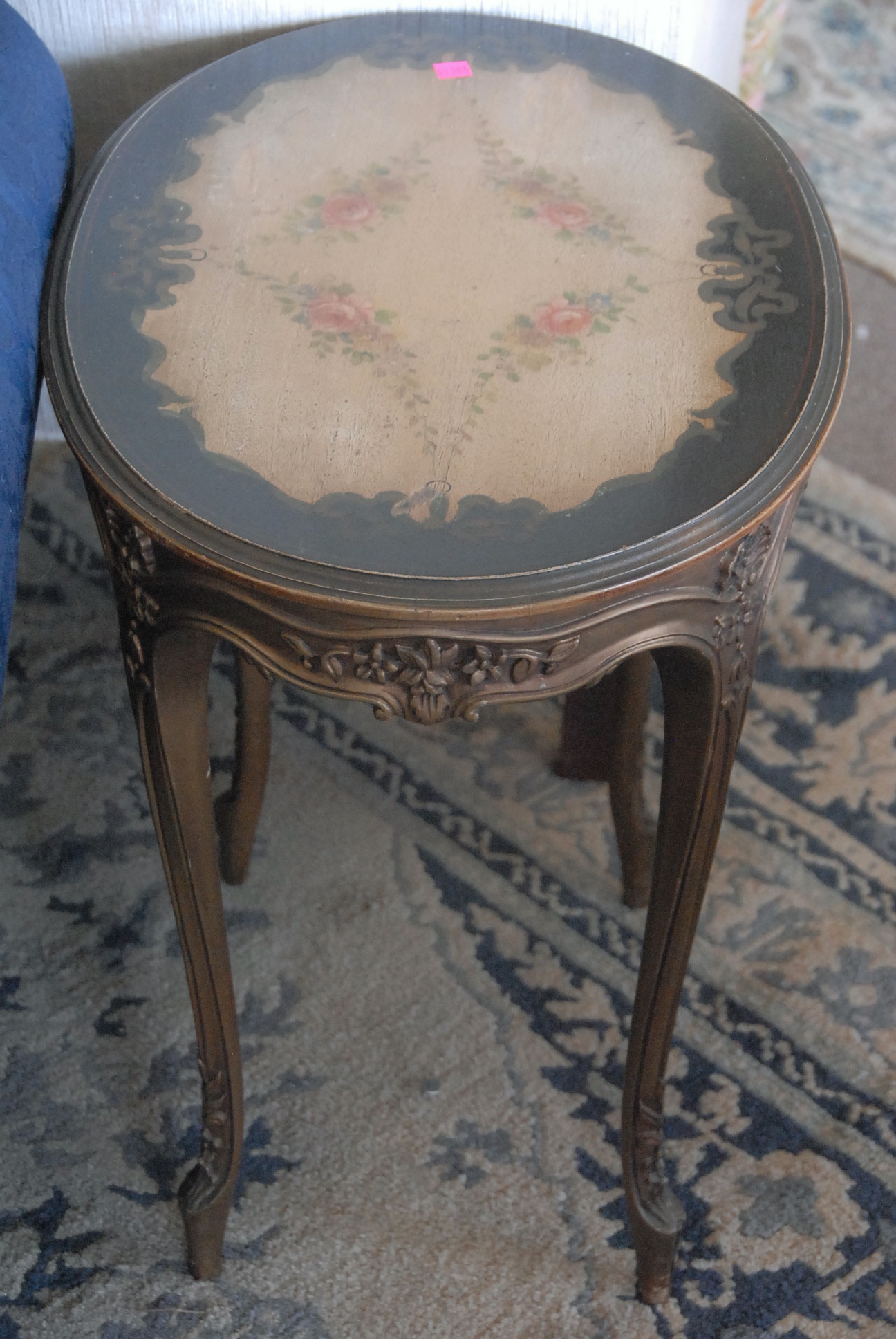Pair of Louis XV style paint decorated side tables, ht. 25 in. top: 17 x 23