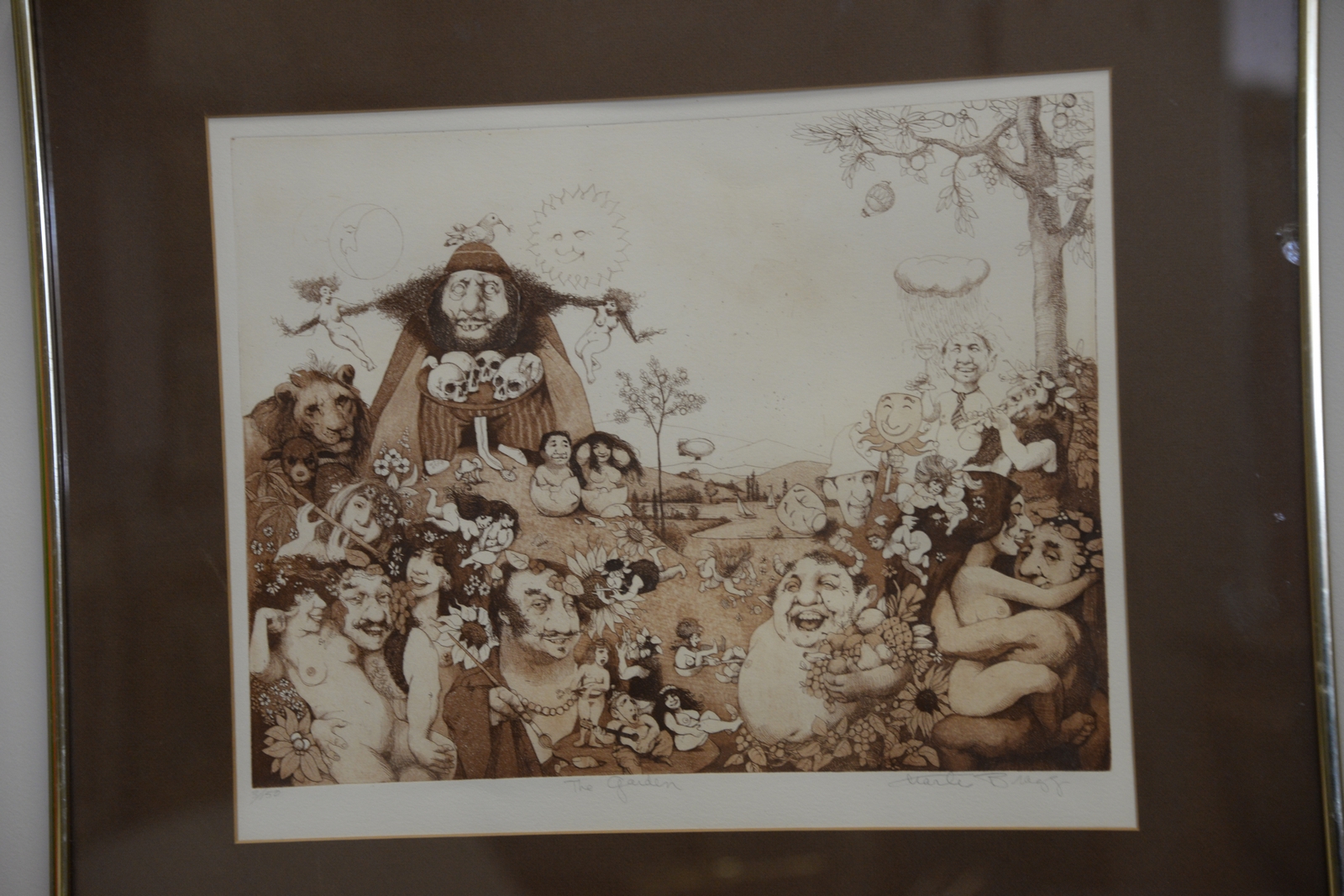 Set of three Charles Bragg 1931 etchings, all pencil signed including Asylum 3/150, The Forces of Death and the Forces of Life 3/150, and The Garden 3/150. 12 3/4 x 9 1/2 to 13 x 16 1/2