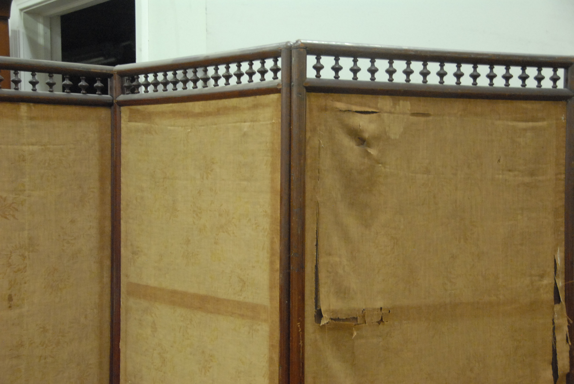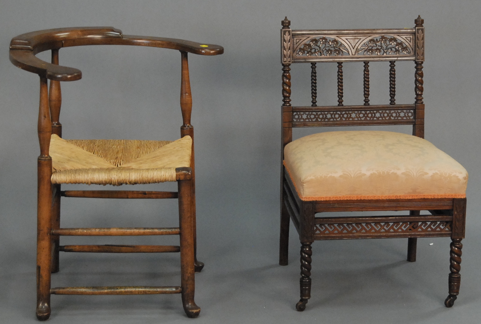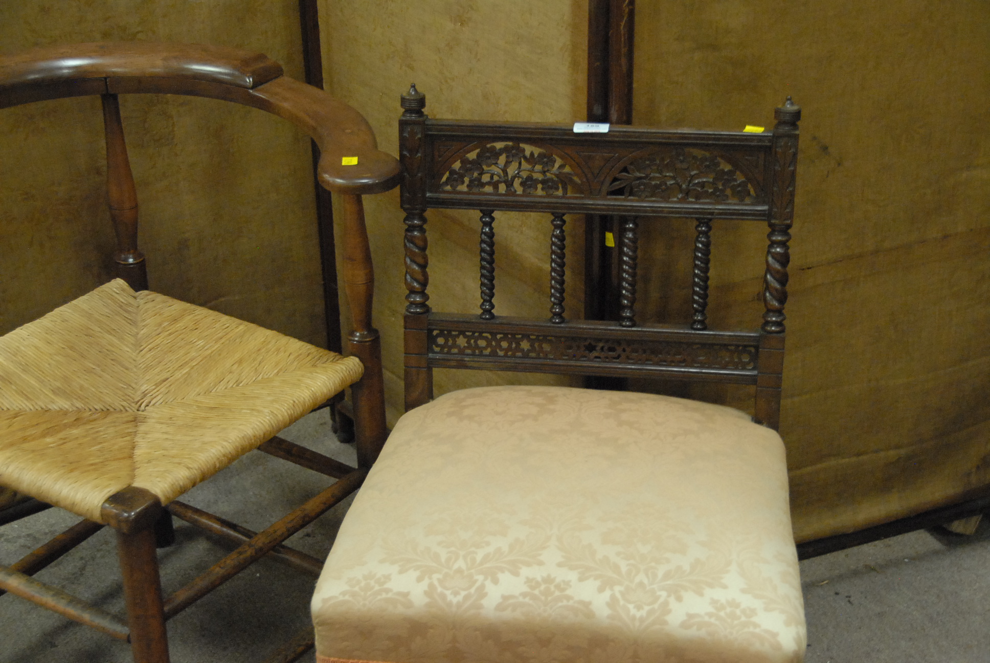 Lot 159: Three piece lot to include Bamboo style three fold screen and two chairs including Queen Anne corner chair and Victorian side chair.