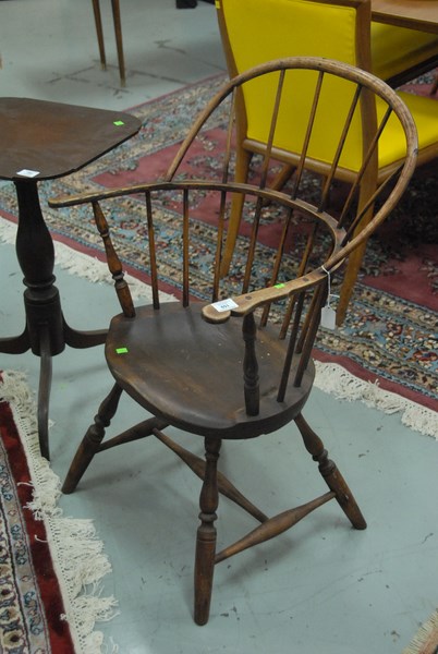 Two early Windsor bow back armchairs.