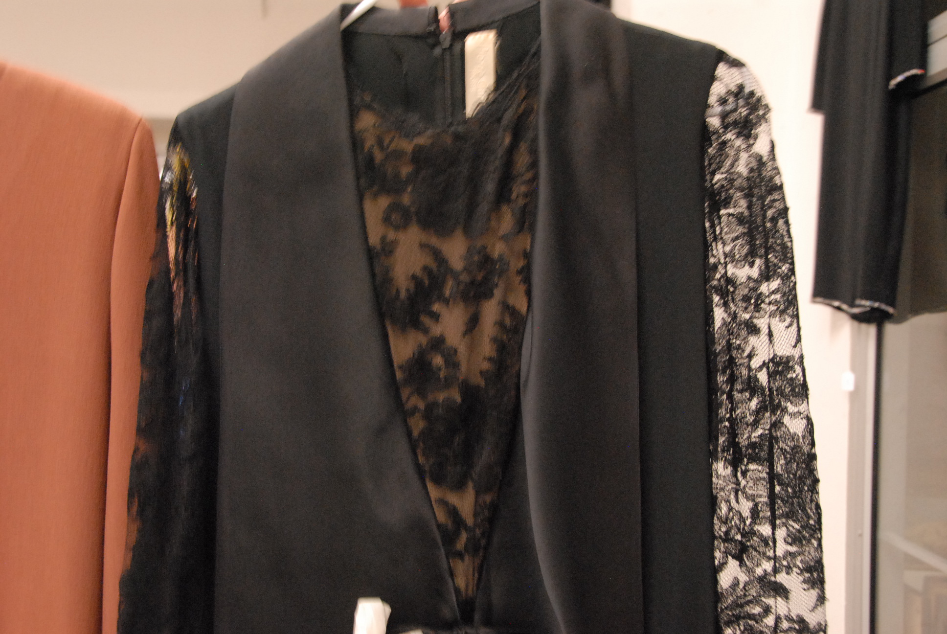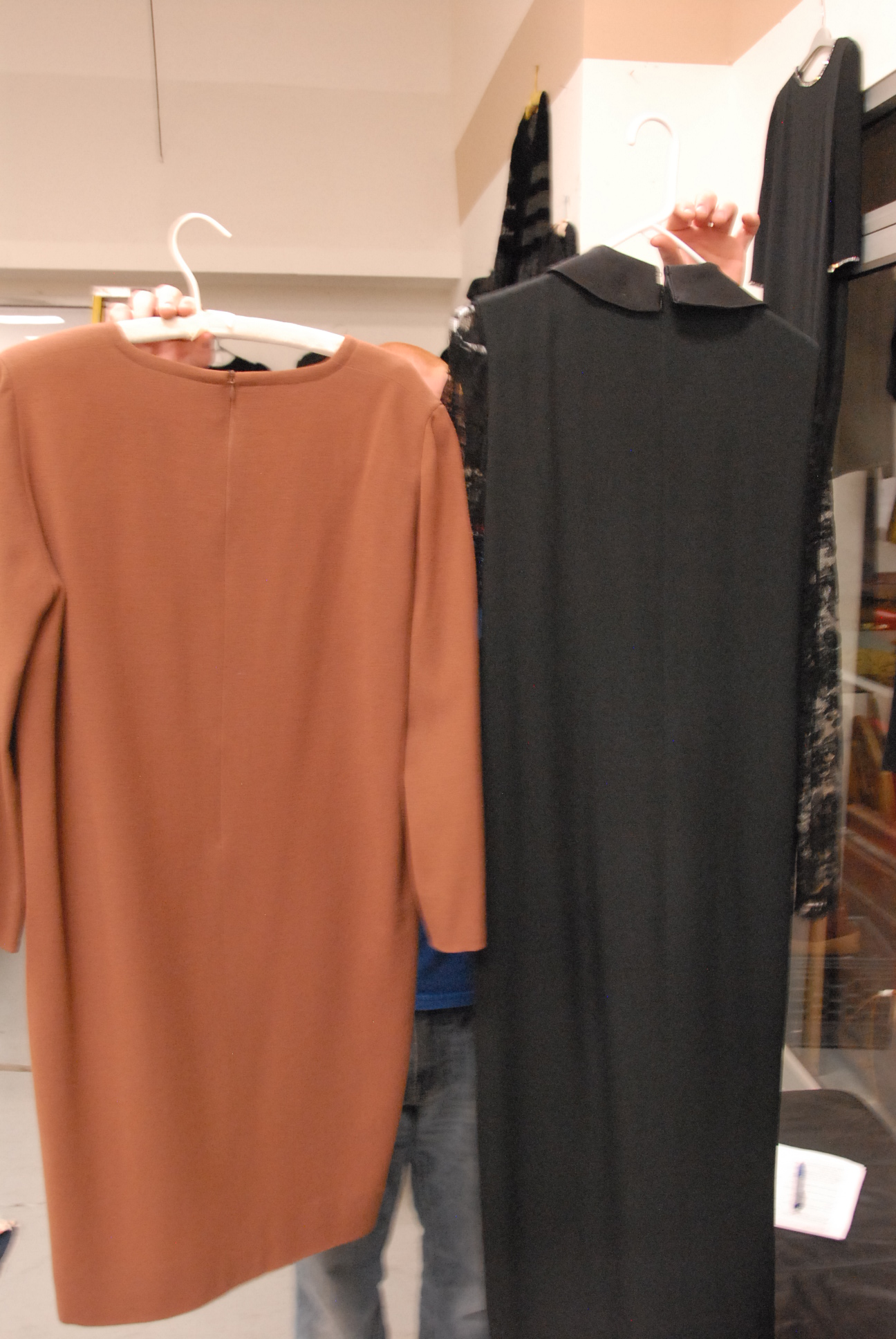 Two piece lot Pierre Cardin brown dress and black evening dress.