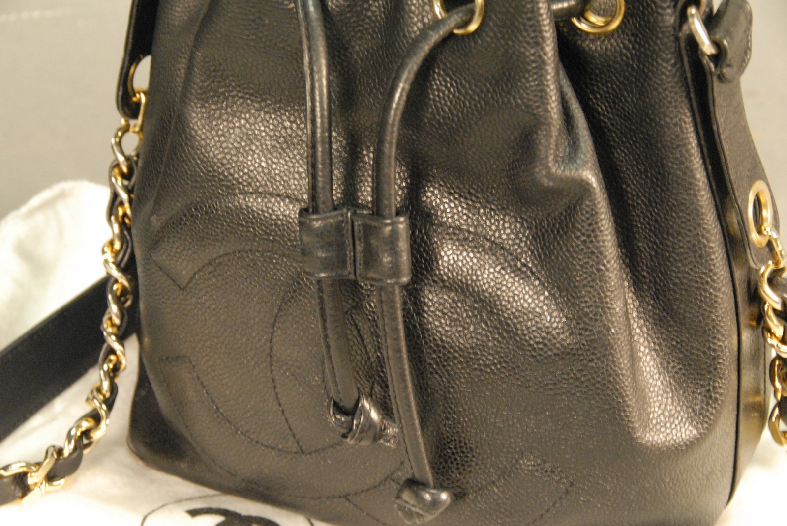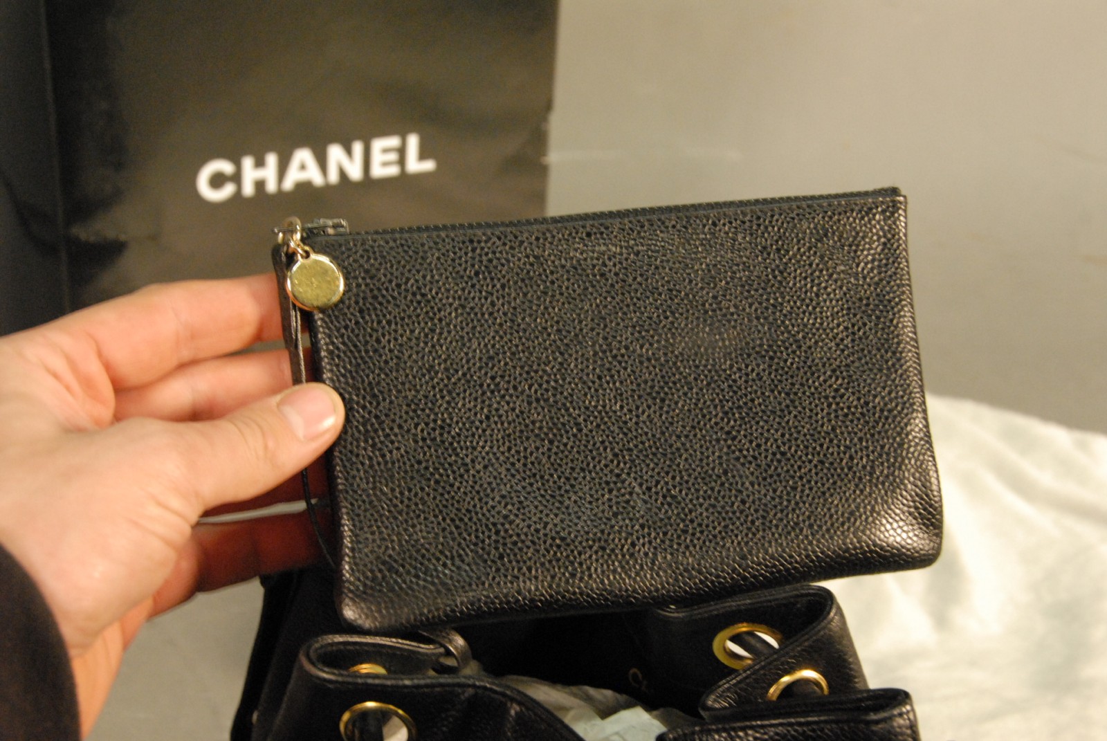 Chanel shoulder bag having gold tone hardware with black leather interior and small attached wallet with original box and bag, authenticity # 1957086.