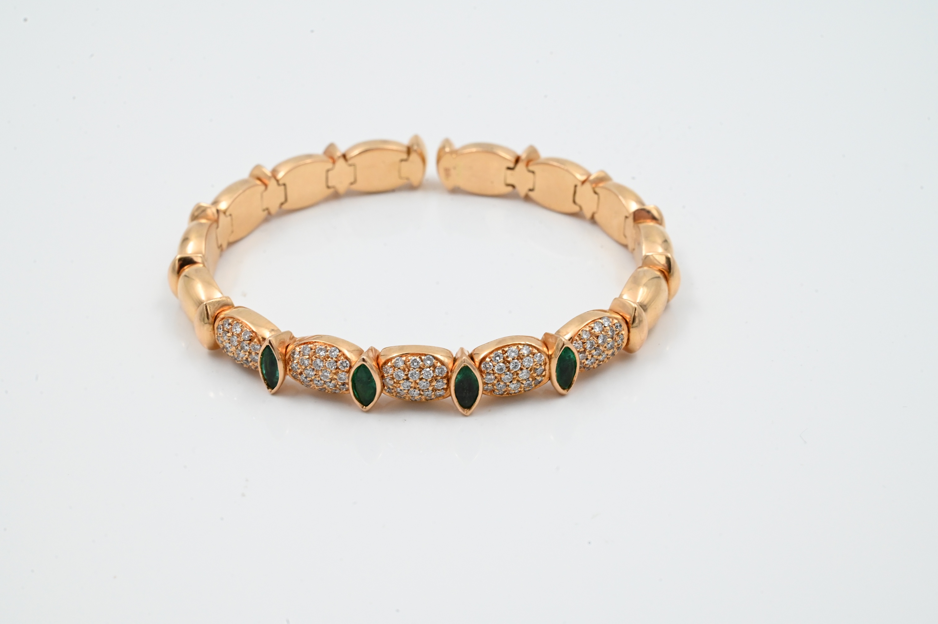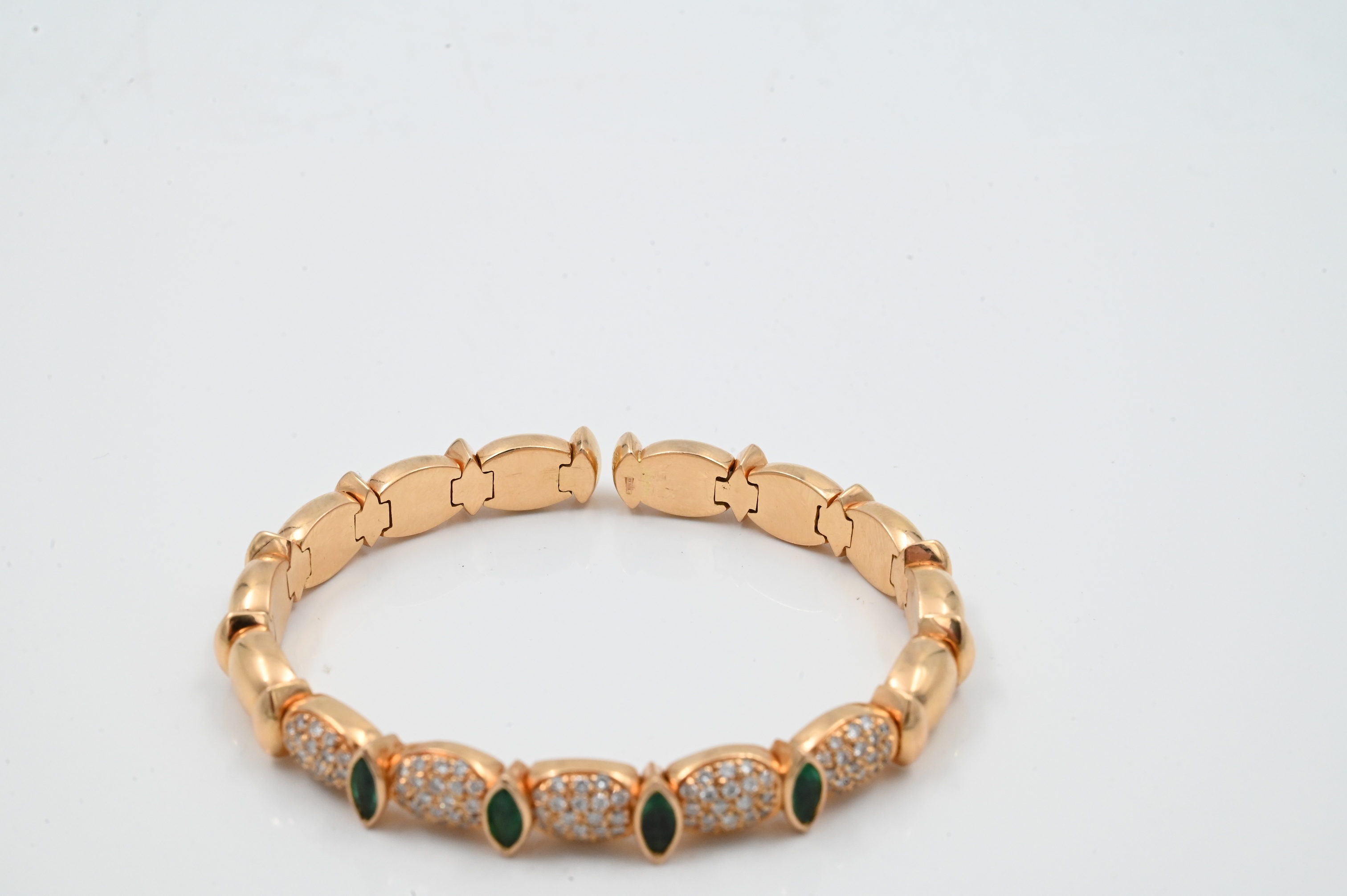 Lot 16: 18K Yellow Gold, Emerald, and Diamond Bracelet