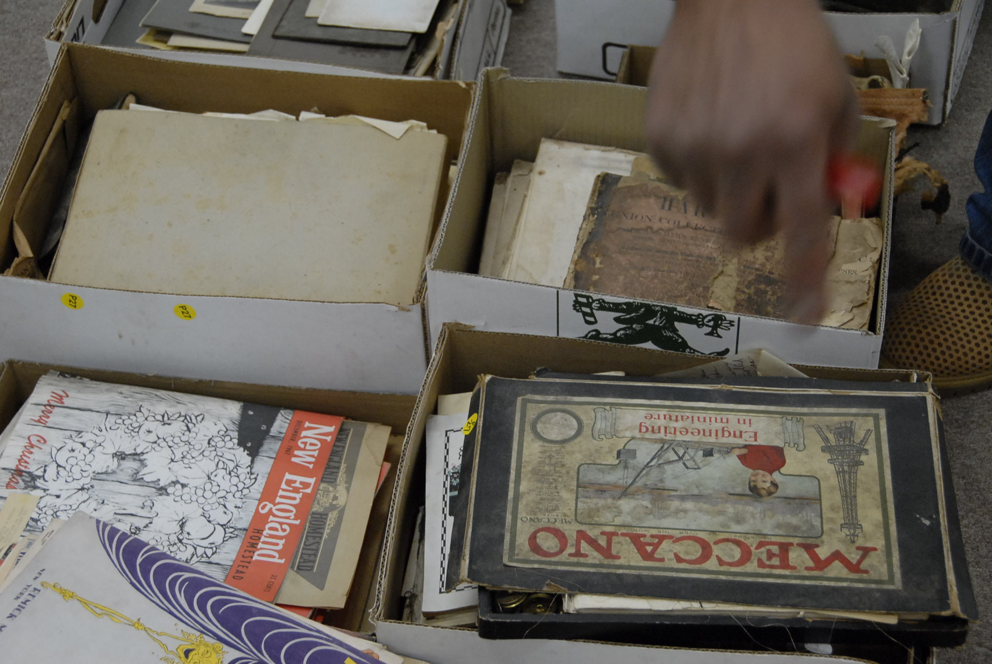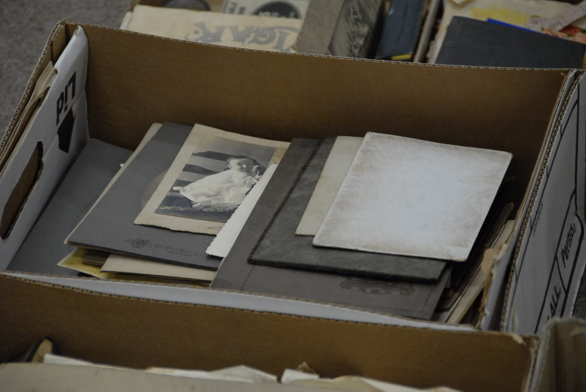 Box lot of early license plates, mostly 1920s and 1930s Massachusetts.