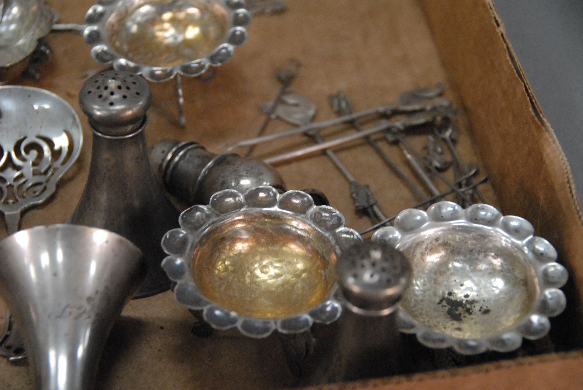 Box lot of sterling silver miscellaneous salts and peppers, 24.8 t oz.