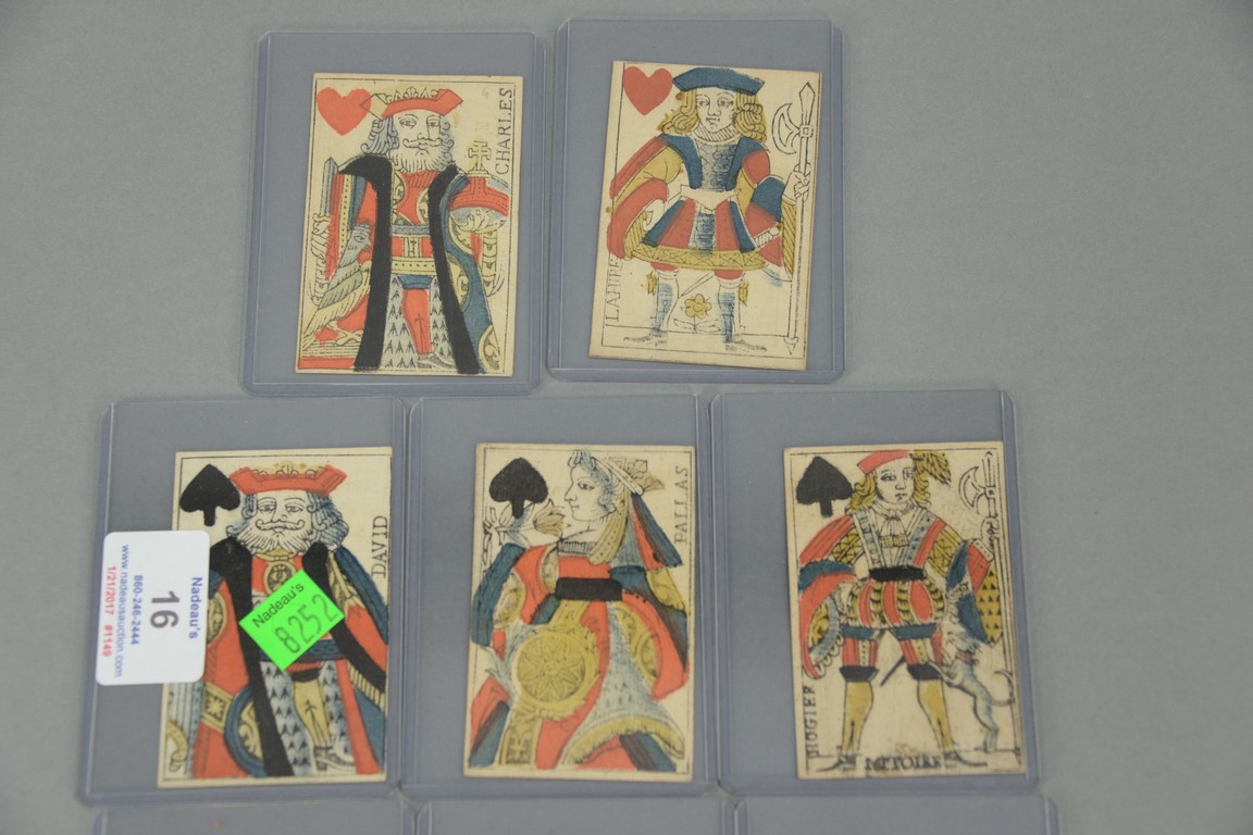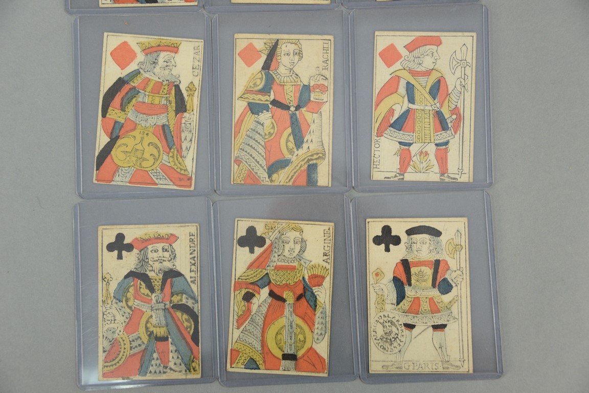 Lot 16: Early French playing cards, set of twelve with Kings, Queens, and Jacks, each named David, Pallas, Hogier, Cezar, Rachil, Hector, Al…