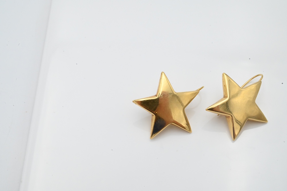 Pair of 18 Karat Gold Star Earrings, marked 750, star 155, 10.2 grams.