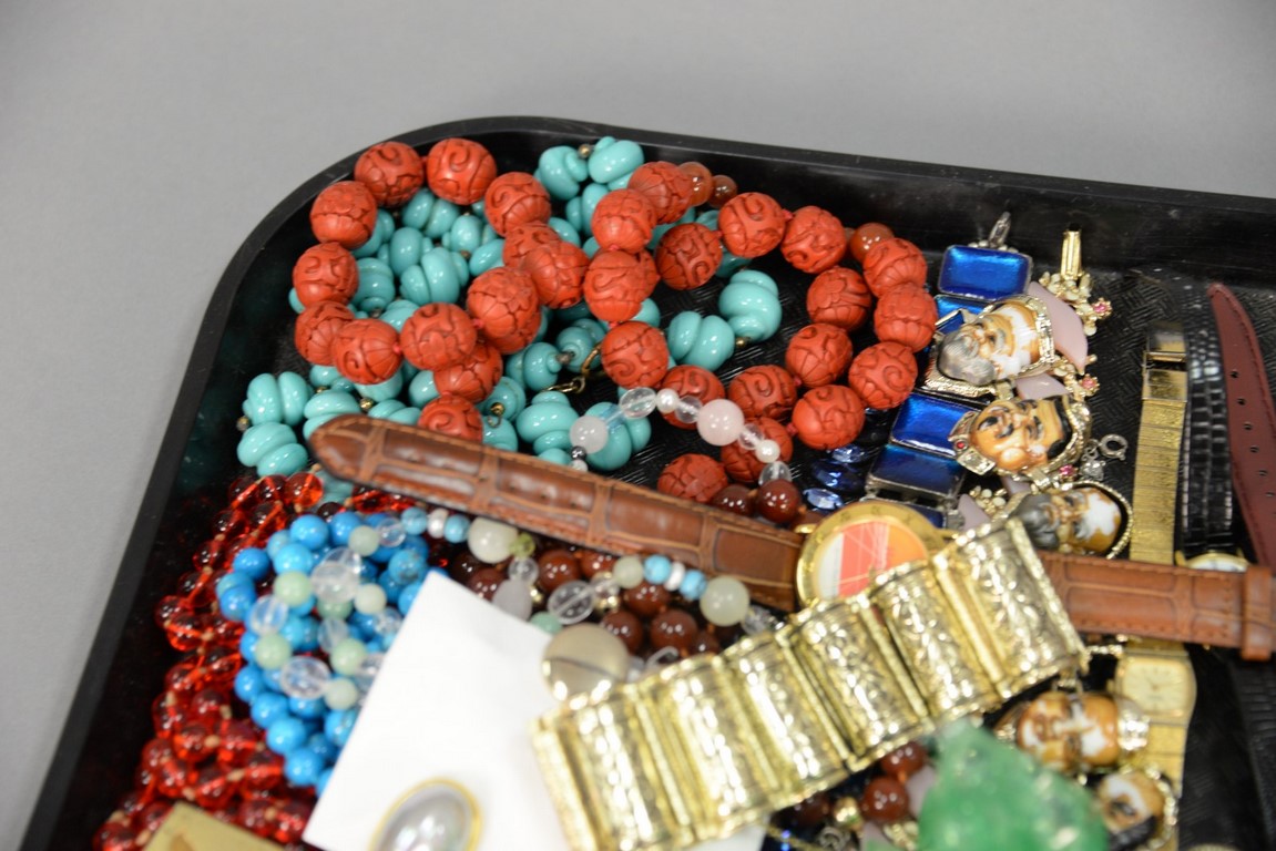Two box lots of costume jewelry including stone necklaces, one turquoise.