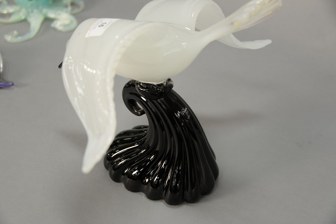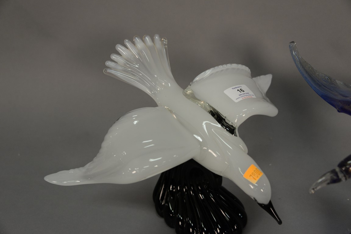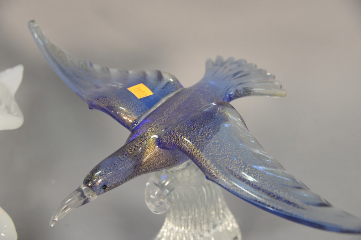 Lot 16: Two Formia Murano art glass flying bird, blue and gold. ht. 7 in. wd. 17 in. and ht. 10 in. wd. 15 1/2 in.