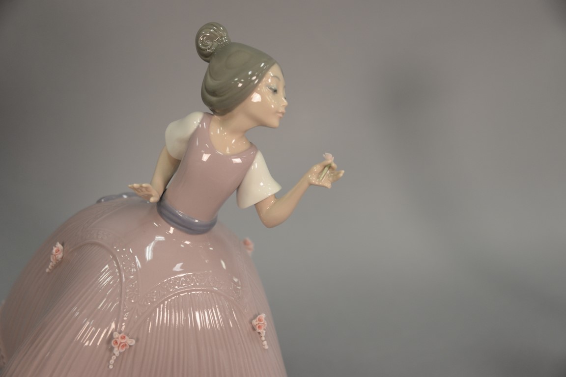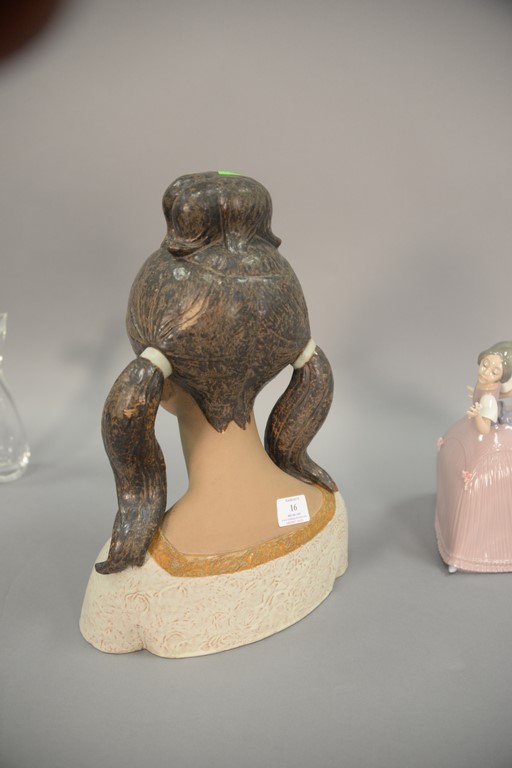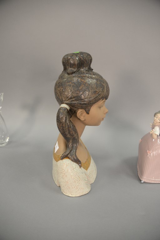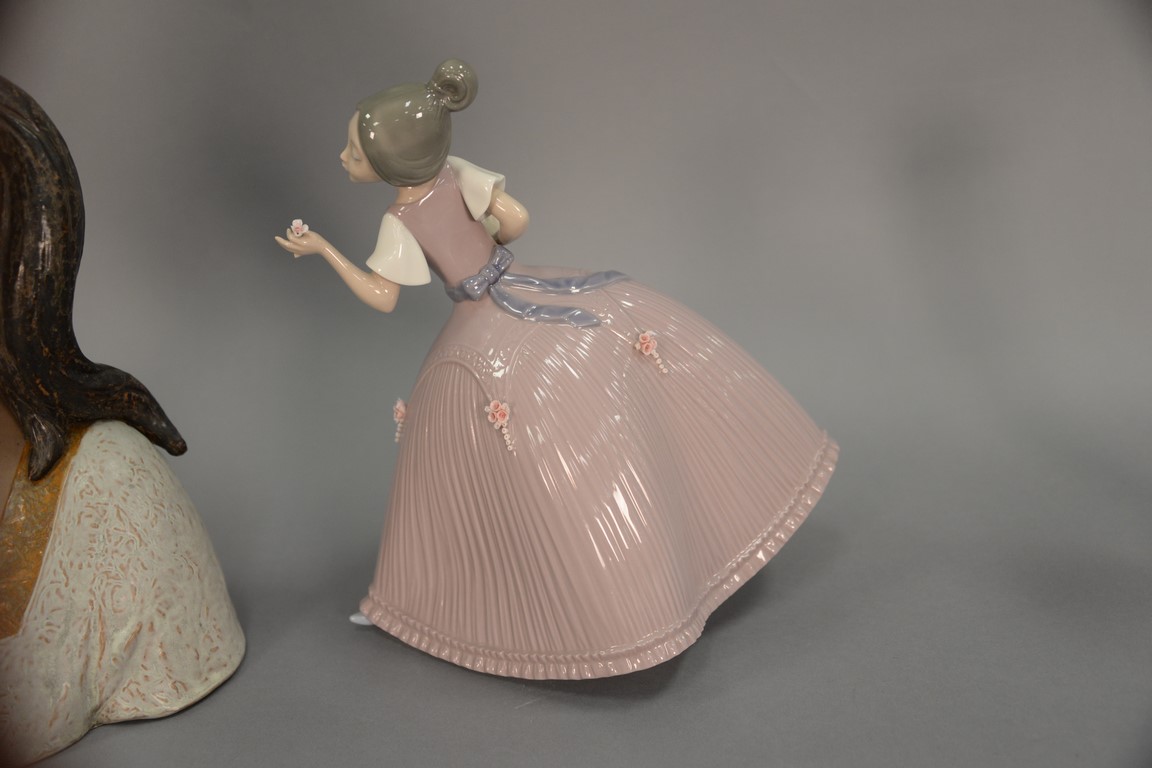 Lot 16: Two porcelain Lladro figures including Antonio Ruiz bust Gardener Girl ht. 16 1/2in. and Flower Girl with pink dress broken finge…