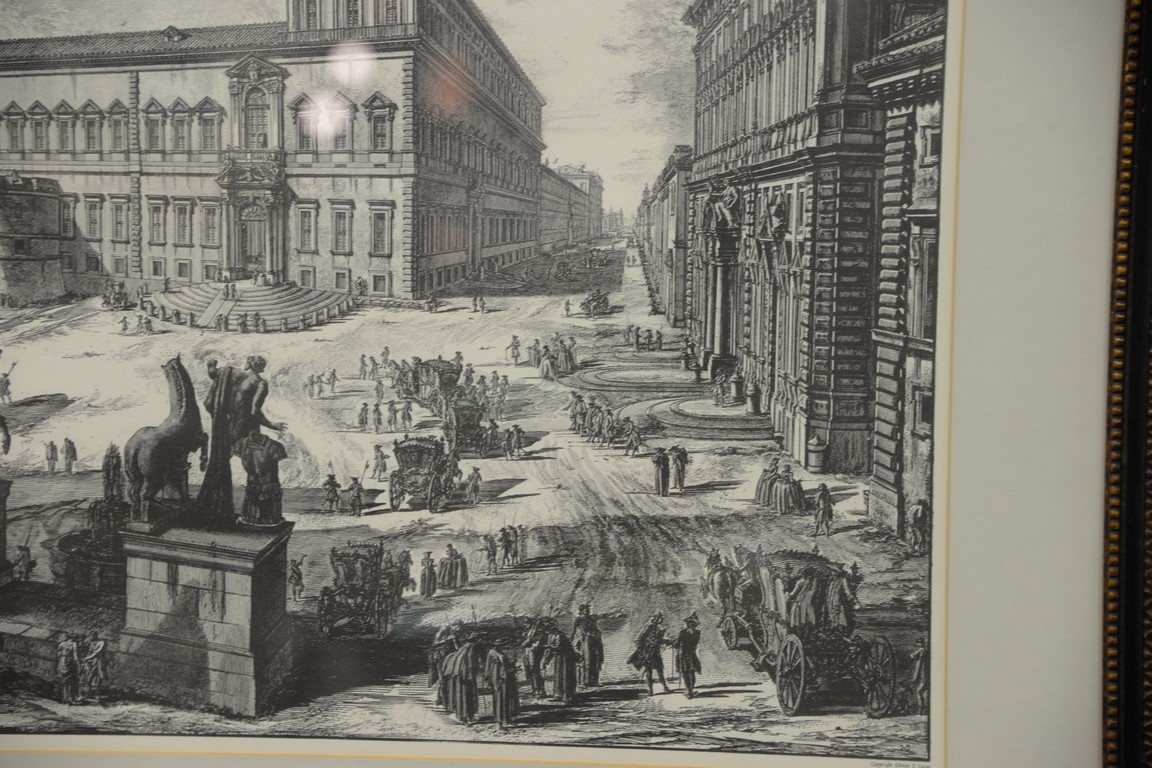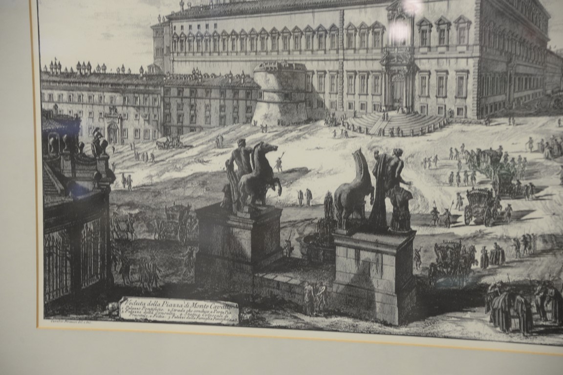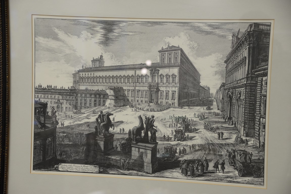 After Giovanni Battista Piranesi, two engraved prints including Veduta di Piazza di Spagna ss 15 1/2 x 22 3/4 and Veduta della Piazza di Monte Cavallo ss 17 1/4 x 25 1/2. Provenance: Property from Credit Suisse’s Americana Collection