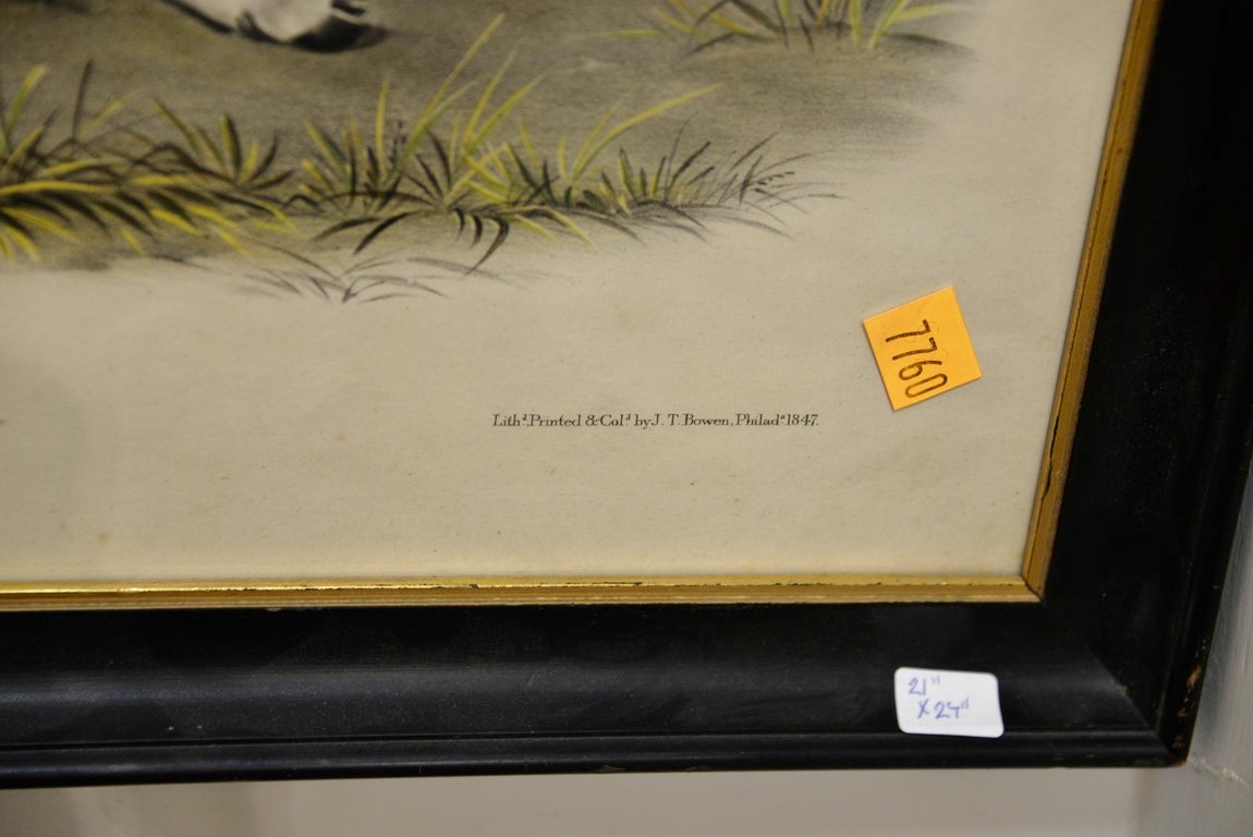 After John Woodhouse Audubon 1812-1862 CAPRA AMERICANA BLAINVILLE ROCKY MOUNTAIN GOAT MALE FEMALE hand colored lithograph marked lower left: Drawn from Nature by J. W. Audubon marked lower right: Lith Printed and col by J. T. Bowen Philad 1847 No. 26 Plate CXXVIII sight size: 21 x 24 Provenance: The Estate of Natalie Rafferty
