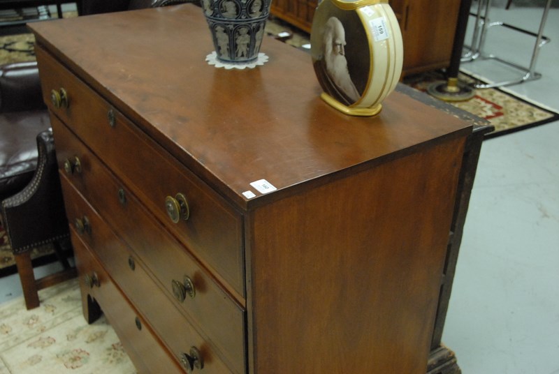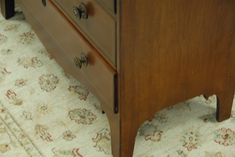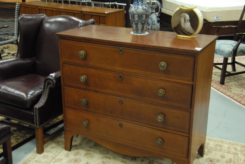 Lot 160: Federal cherry chest of four drawers on cut out bracket base with line inlay, circa 1790-1810, ht. 39 1/2in. wd. 43 1/2in. dp. 19in.