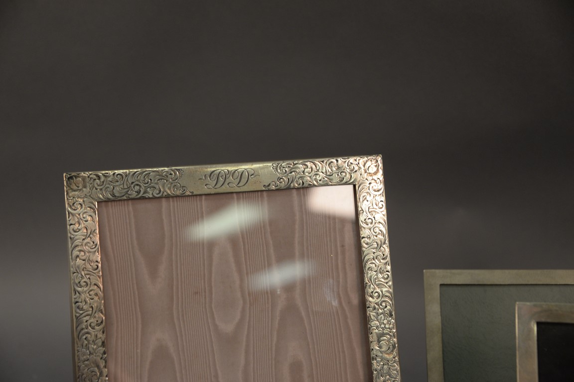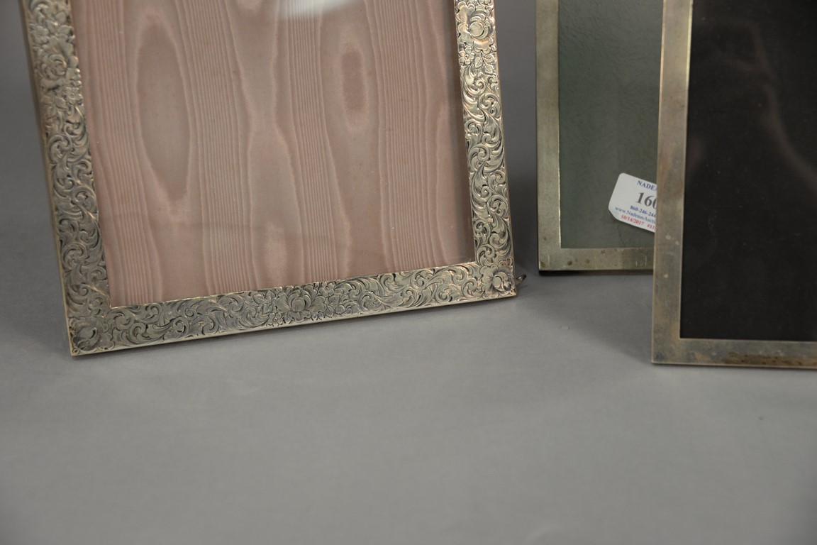 Lot 160: Five sterling silver picture frames including Shreve Crump & Low with incised flower decoration, set of three medium sized frames, a…