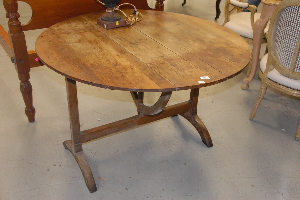 Lot 160: French oak tilt top vendage or wine table with plank surface, 19th century. Provenance: From prominent Woodbridge, Connecticut fa…..
