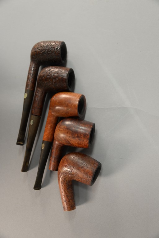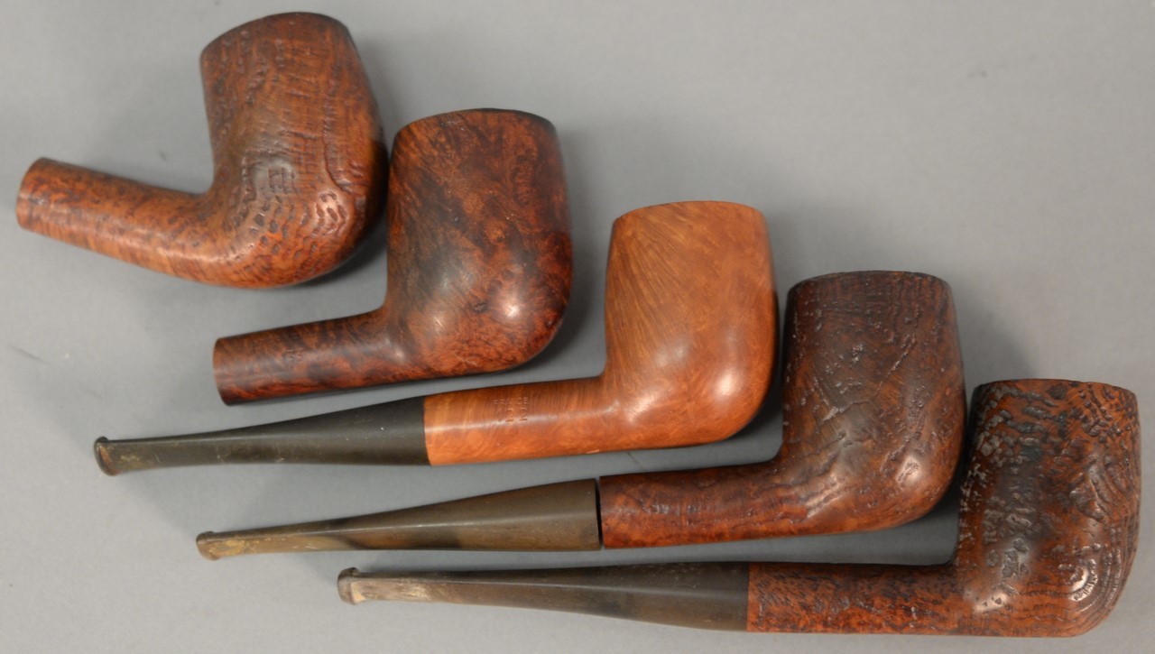 Group of five pipes including GBD tobacco pipe, GBD Sovereign France 122 pipe, GBD Granitan 1331, GBD Granitan 867, GBD Granitan 133, and GBD New Standard two missing mouthpieces. Provenance: Estate of Arthur C. Pinto, MD