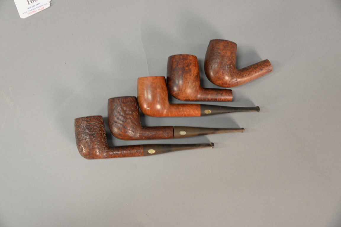 Lot 160: Group of five pipes including GBD tobacco pipe, GBD Sovereign France 122 pipe, GBD Granitan 1331, GBD Granitan 867, GBD Granitan 133…