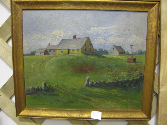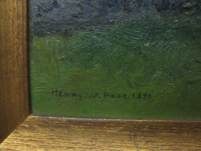 Henry W. Poor oil on board farmhouse and landscape dated 1895 signed lower left