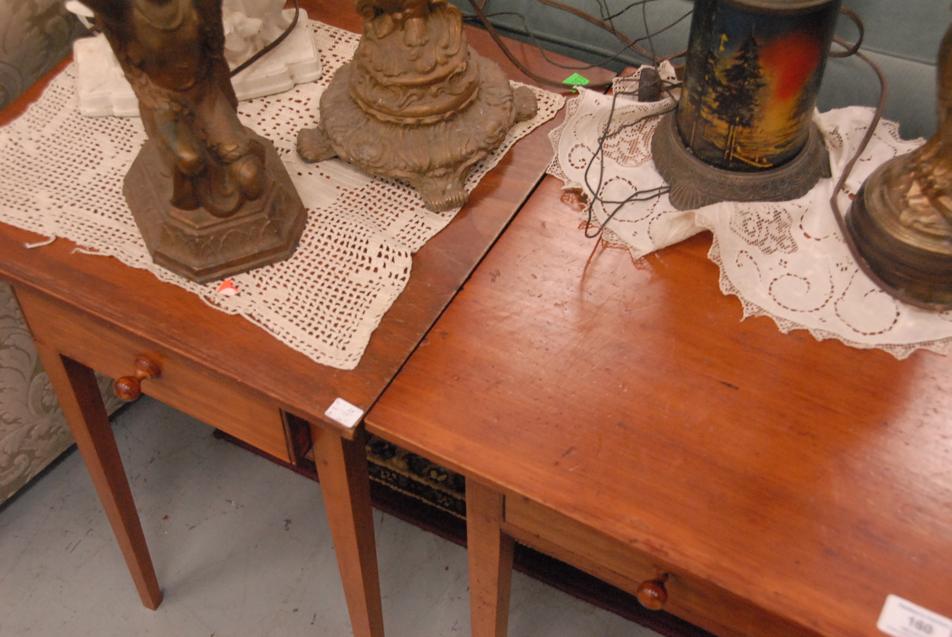 Pair custom Federal style one drawer stands, top: 17 x 17.