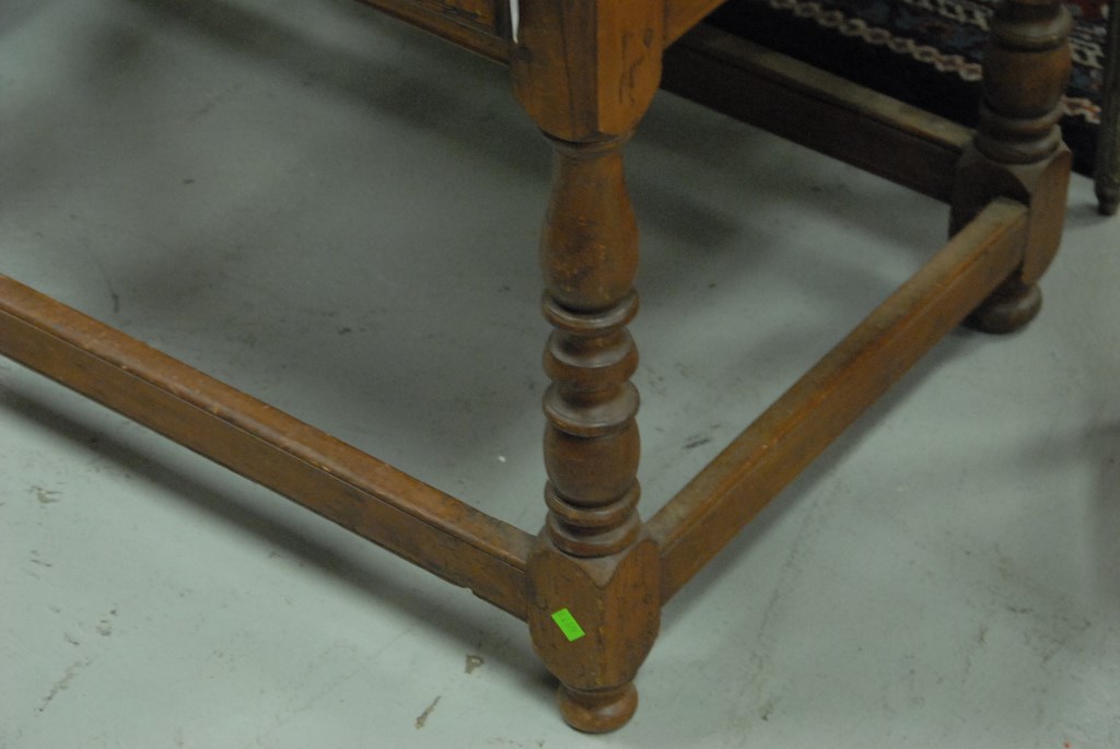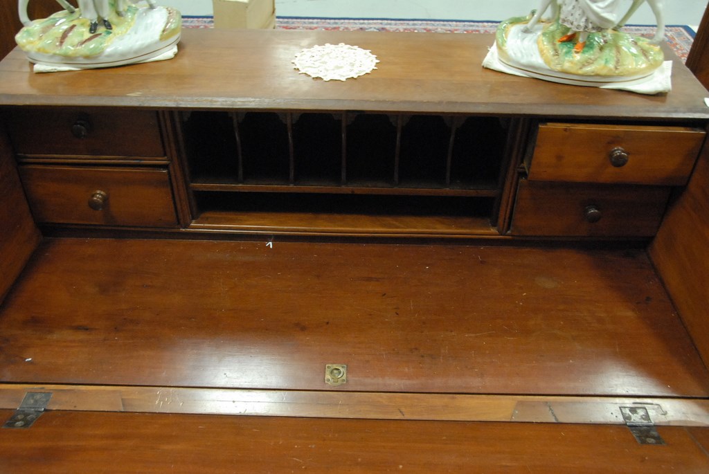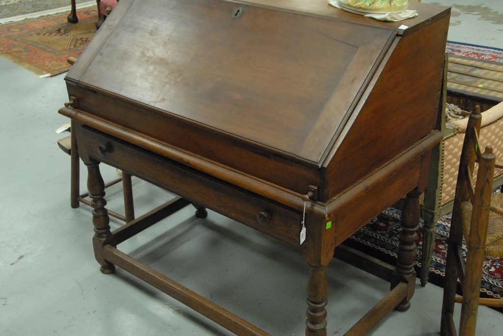 Lot 160: Queen Anne cherry desk on frame in two parts, upper section with slant lid desk over one drawer on base with turned legs and square …