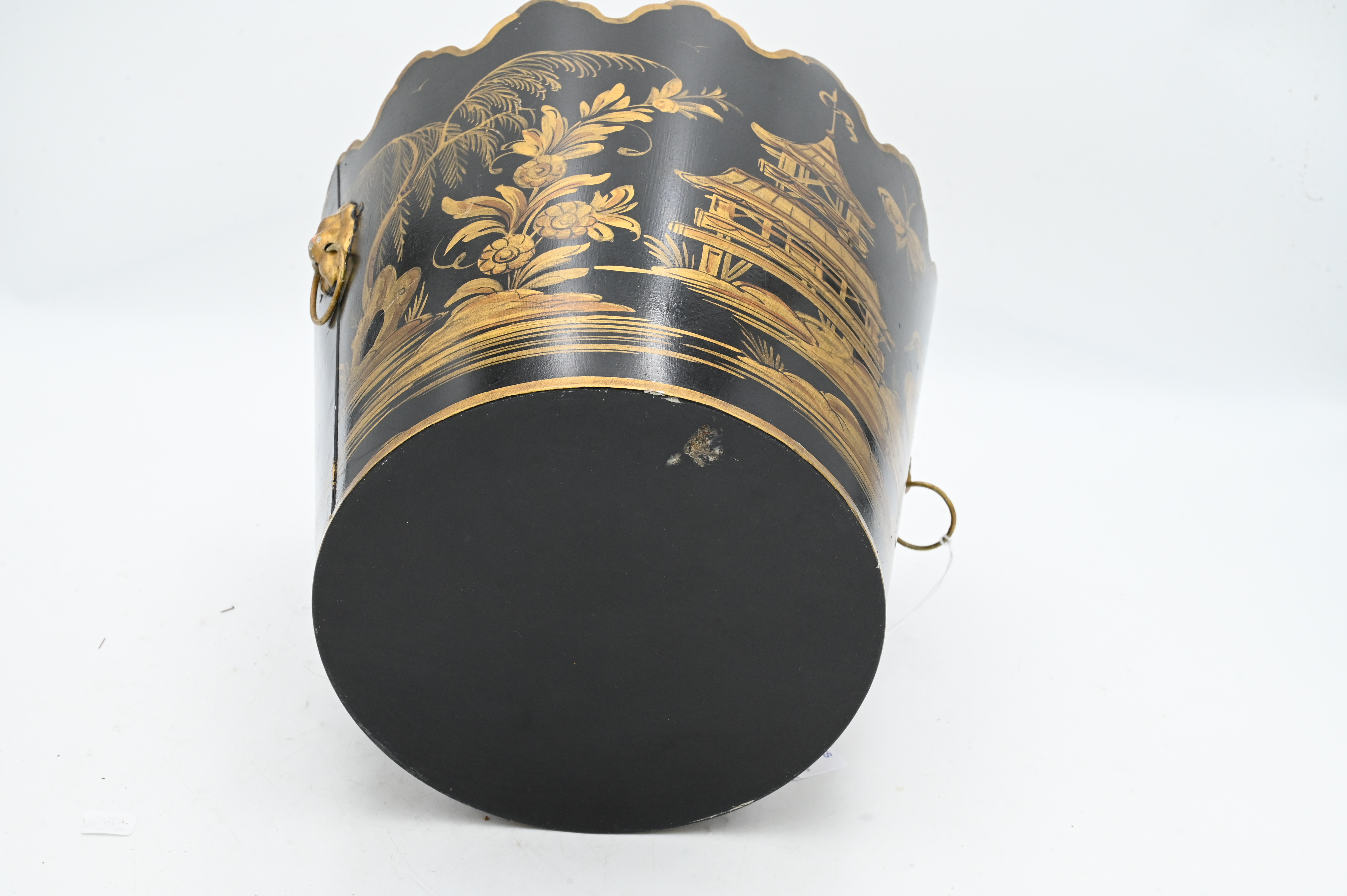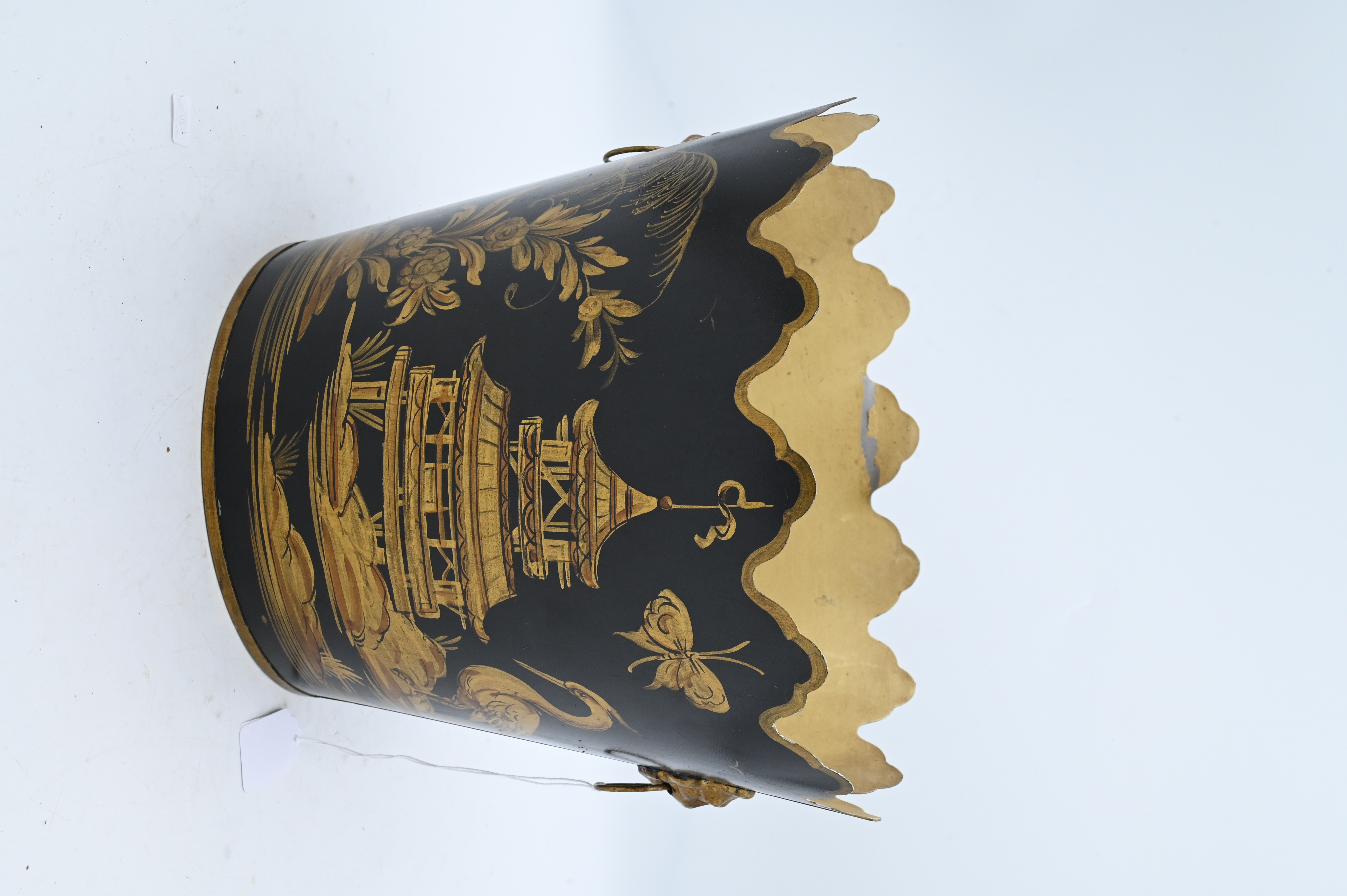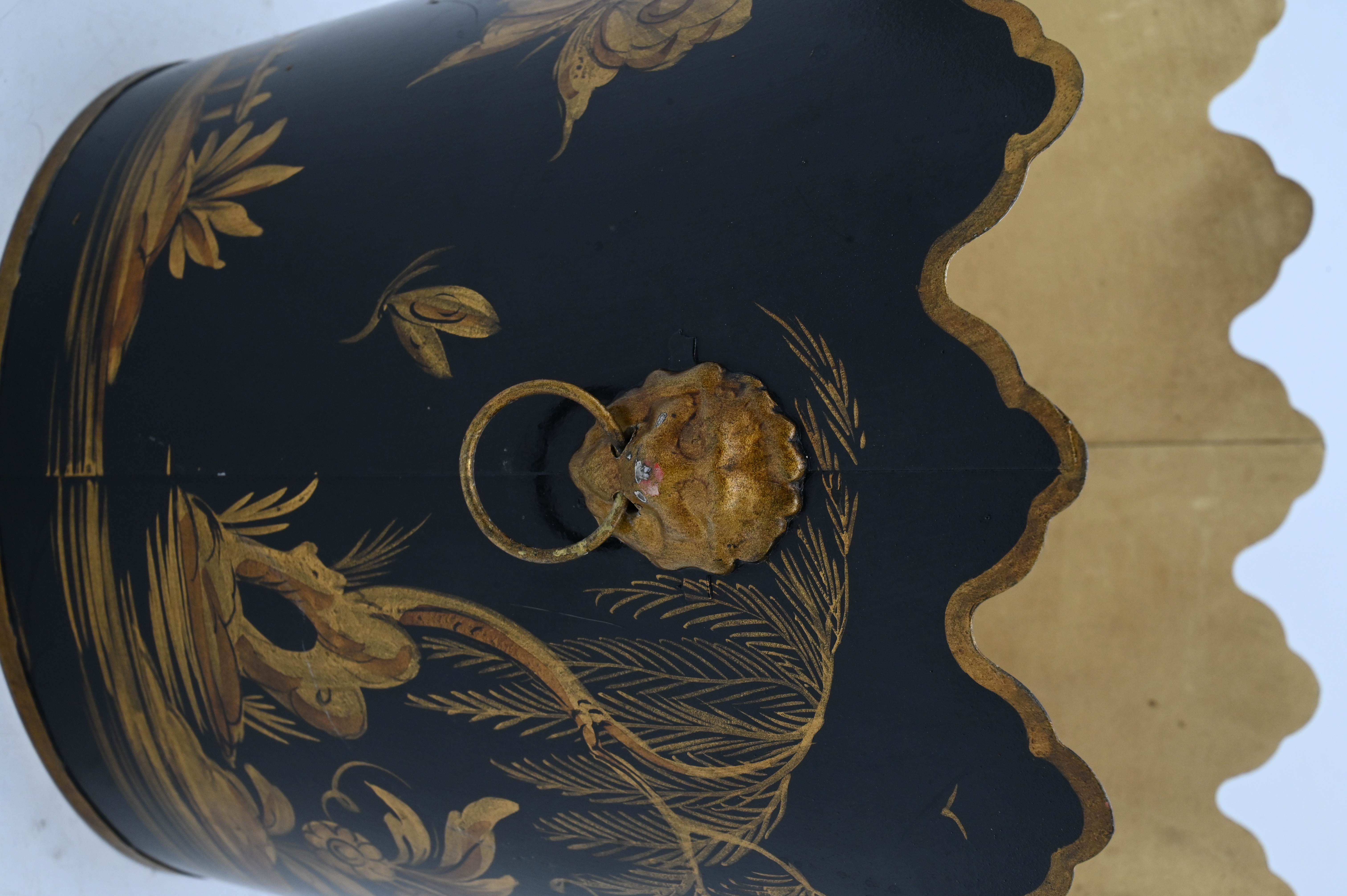 Lot 160: Tole Gilt Decorated Chinoiserie Cachepot / Wastebasket