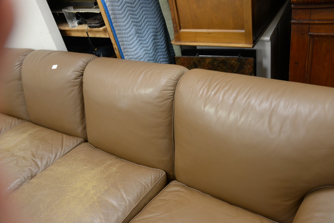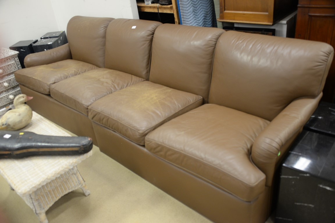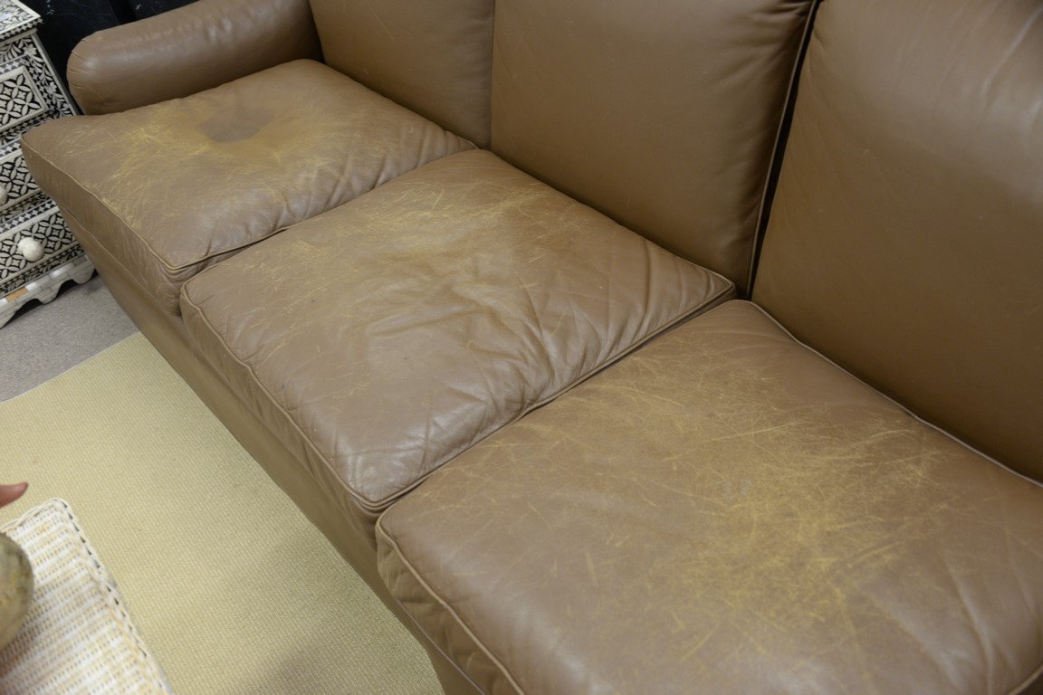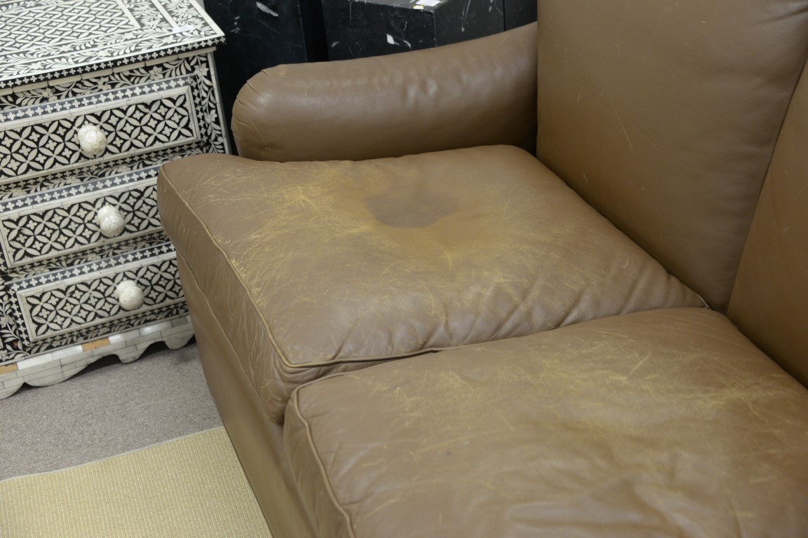 Two part brown leather sofa worn. lg. 114in.