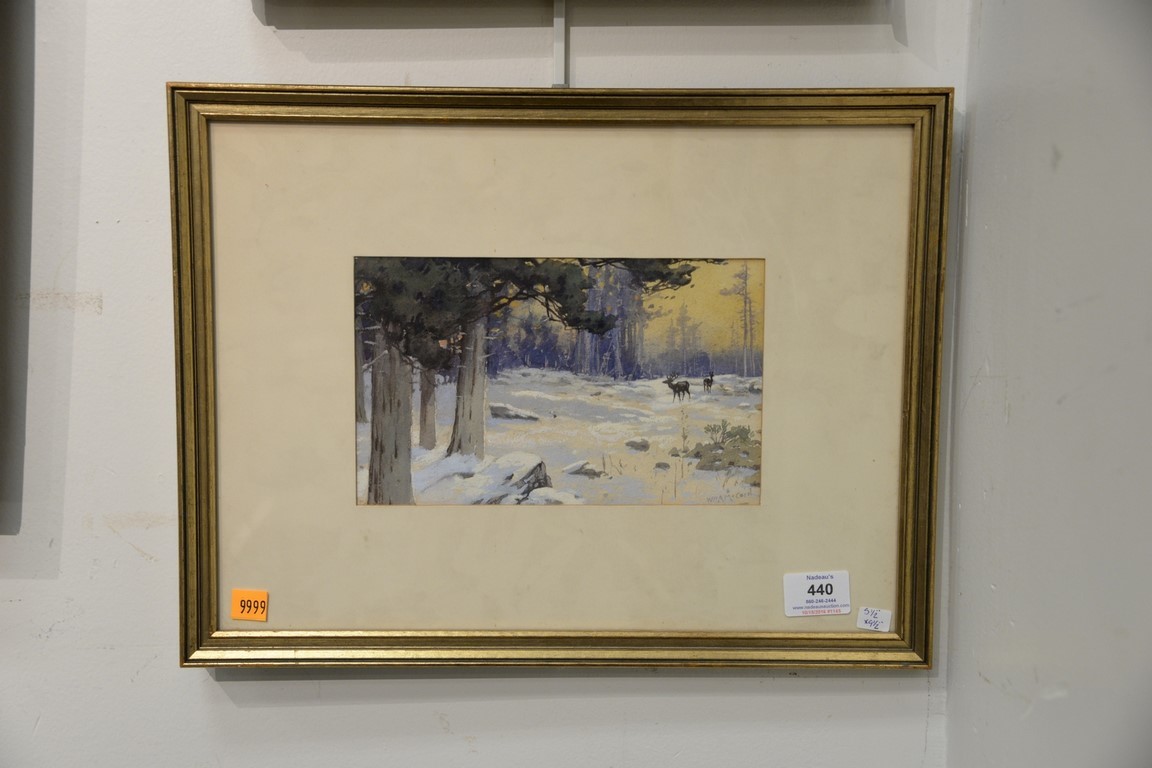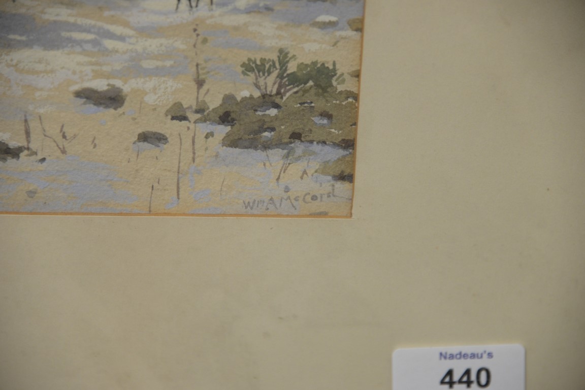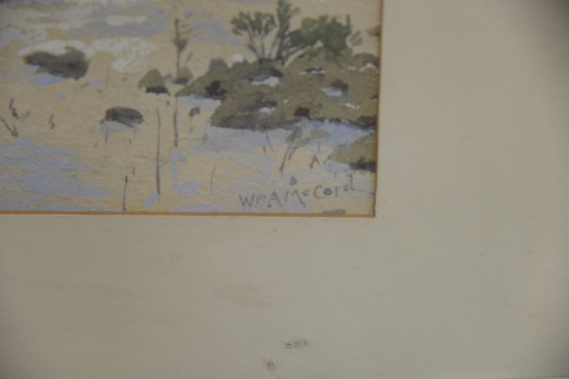 Lot 160A: William A. McCord 1918, watercolor on paper, Winter Landscape, signed lower right: Wm. A. McCord, 5 1/2 x 9 1/2