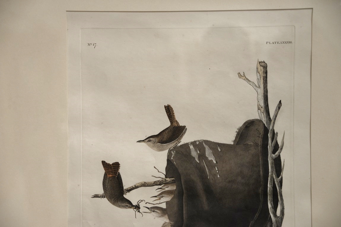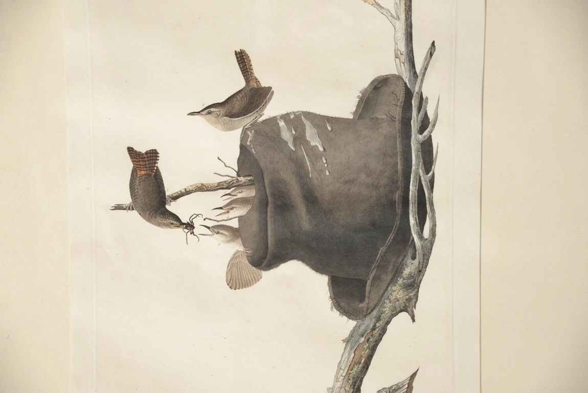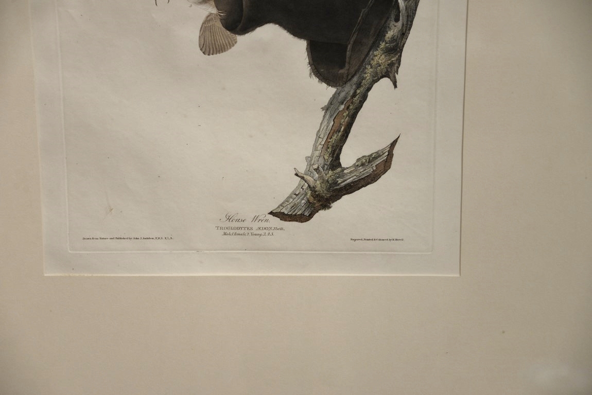After John James Audubon 1856-1871 House Wren TROGLODYTES AEDON VIELL Male 1, Female 2, Young 3,4,5. colored engraving marked lower left: Drawn from Nature and Published by John J. Audubon F.R.S. F.L.S. marked lower right: Engraved, Printed, and Coloured by R. Havell plate size: 19 1/4 x 13 Provenance: The Estate of Natalie Rafferty