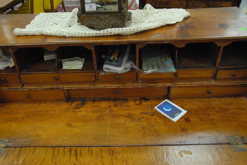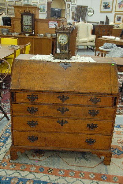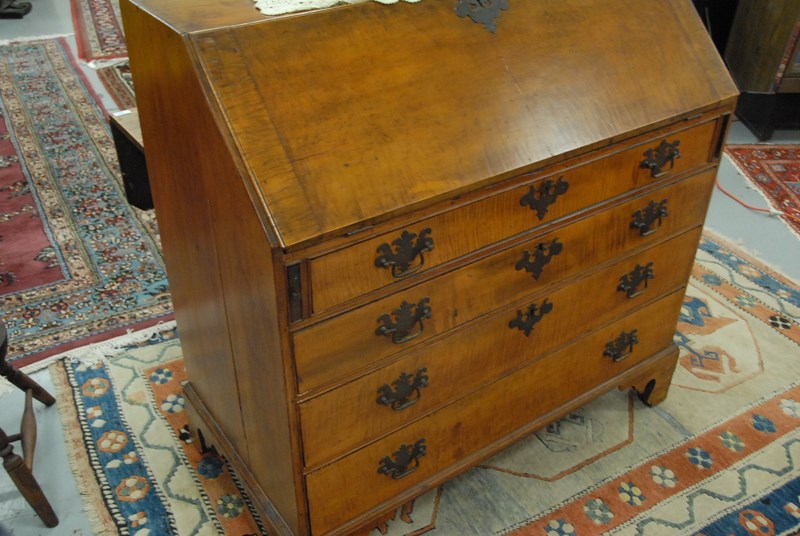 Lot 161: Chippendale maple and figured maple desk with slant front over four drawers on original bracket base, wd. 42in.