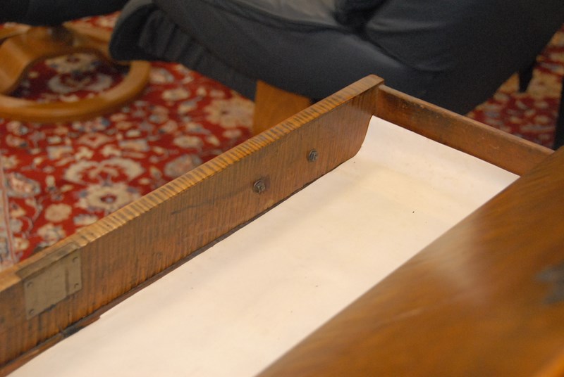 Chippendale maple and figured maple desk with slant front over four drawers on original bracket base, wd. 42in.