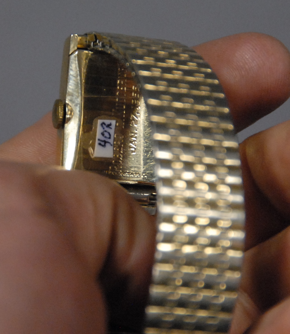 Lot 161: Hamilton 14K gold vintage man’s square wristwatch.