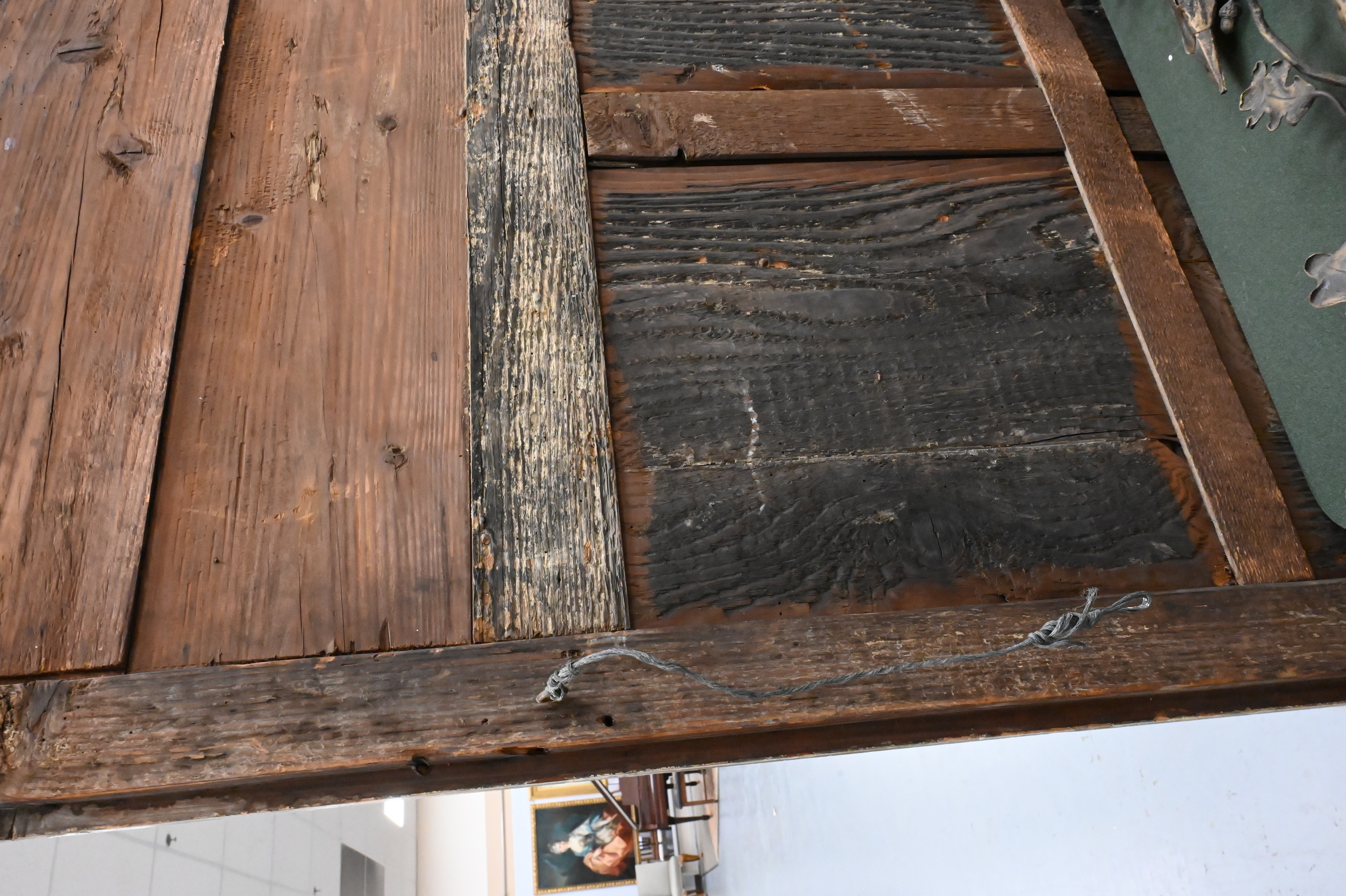 Presents well, painted surface with distressed, minor paint losses and chipping to carved garlands, some wear and age cracks