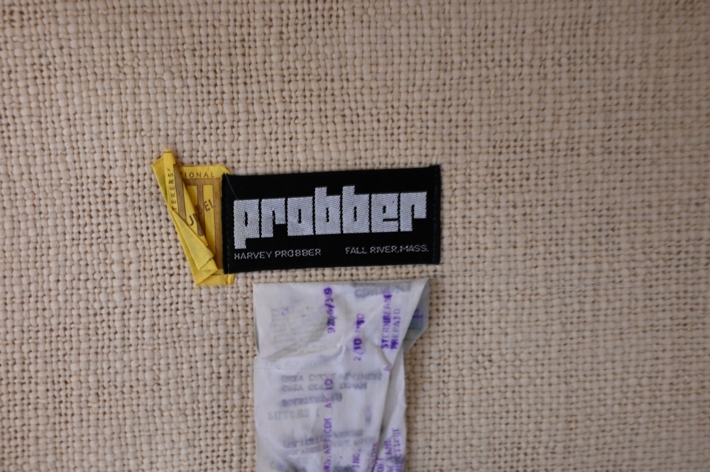 Pair of Harvey Probber Tuxedo Sofas, having Harvey Probber label on decking, stamped on tag 1970, height 27 inches, width 84 inches, depth 33 inches.