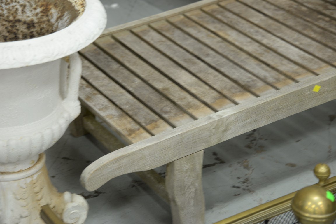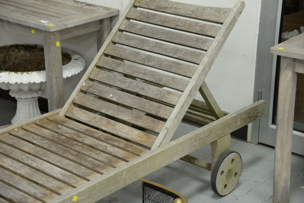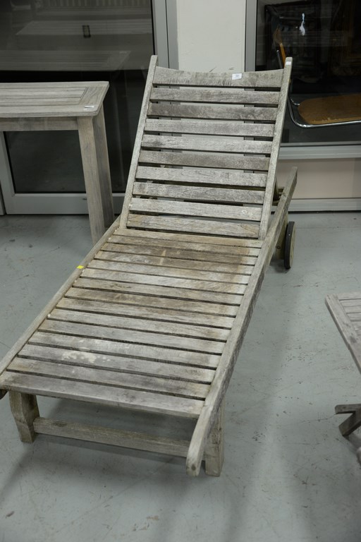 Pair of teak Scan Com teak lounges. lg. 75 in.
