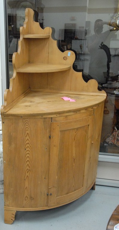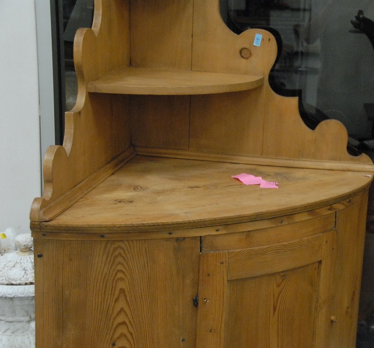 Pine corner cabinet, ht. 70in. wd.47in. Provenance: Estate of Judy Gengras McDonough of West Hartford, CT.