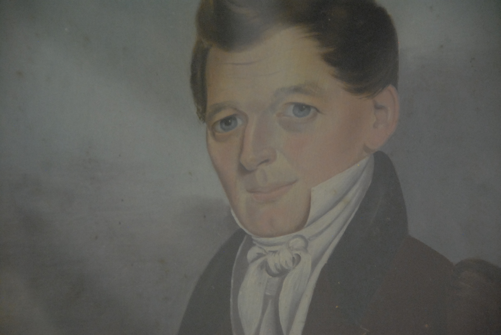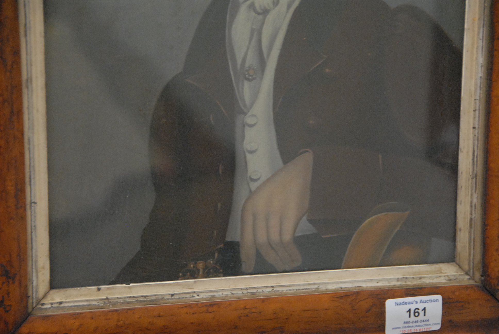 Lot 161: Primitive painting GENTLEMAN SEATED IN A CHAIR oil on board in birdseye maple frame 15 X 12 Provenance: Property from The Estate of Margaret Oliphant of Old Lyme, Connecticut