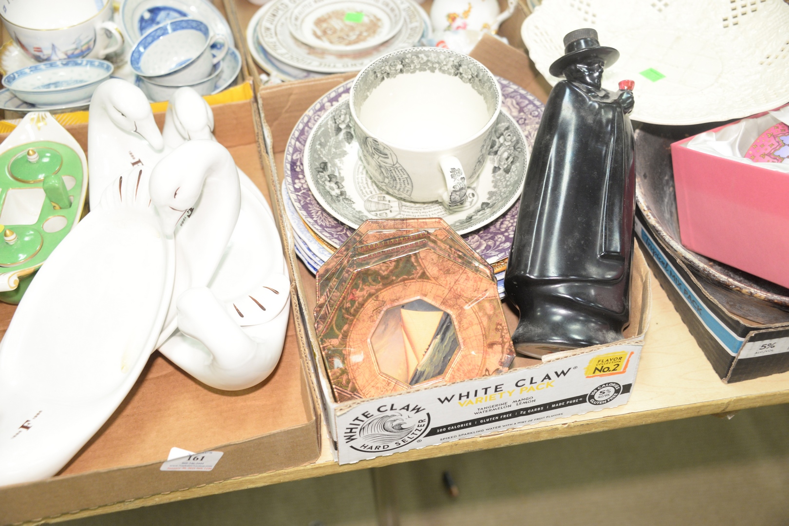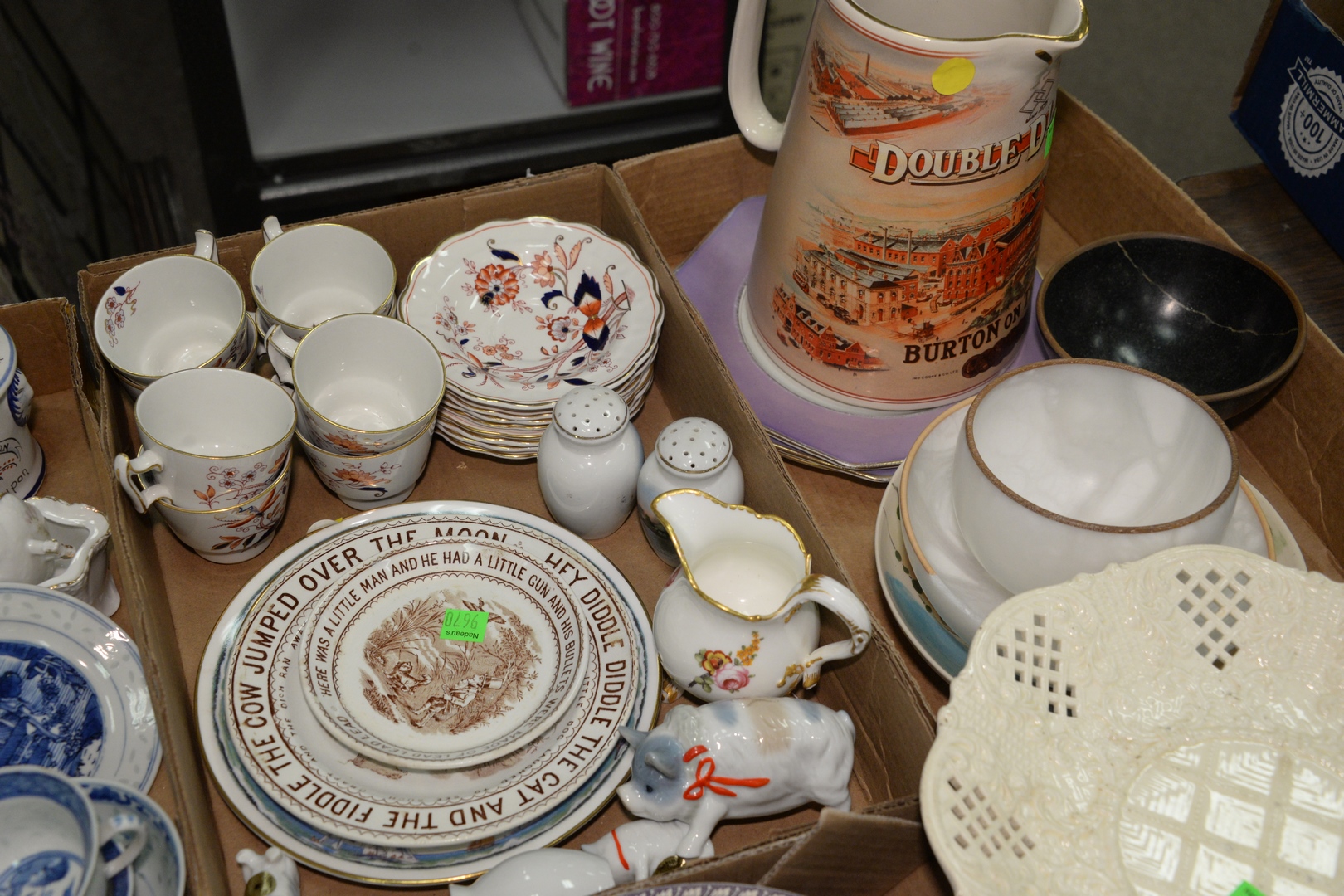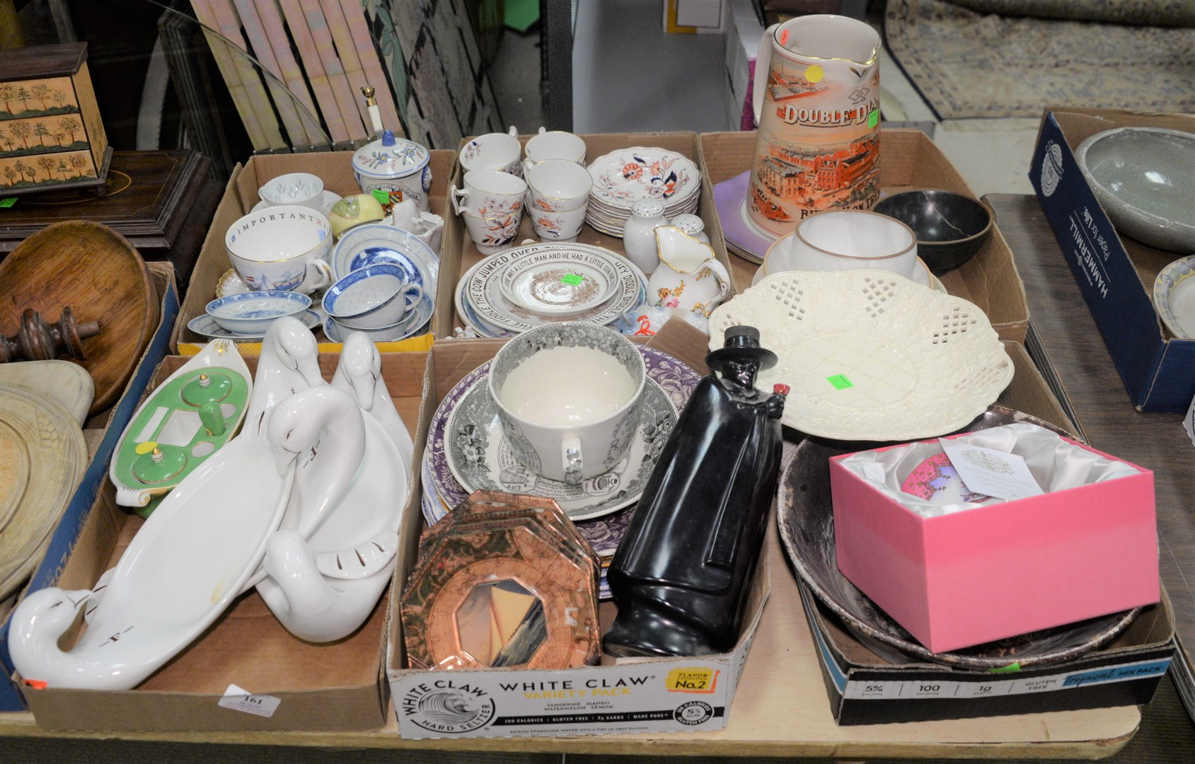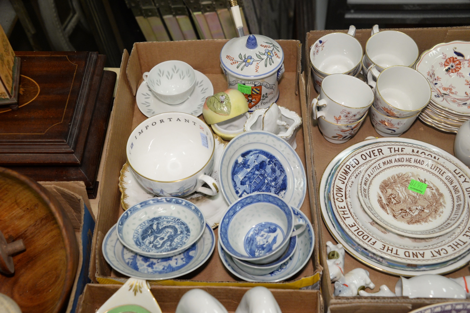 Lot 161: Six Tray Lots to include salt glazed compote, cups and saucers, pitcher, inkwell, Staffordshire, etc. Provenance: The Estate of Di…