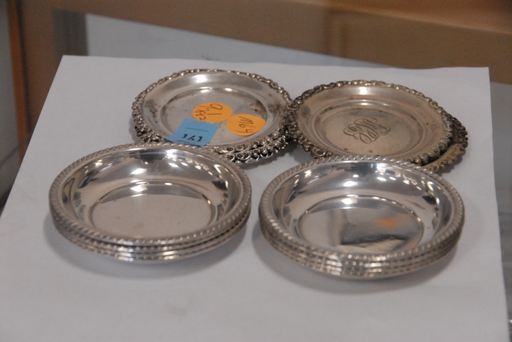 Lot 161: Sterling silver coasters, two patterns, 9.1 troy