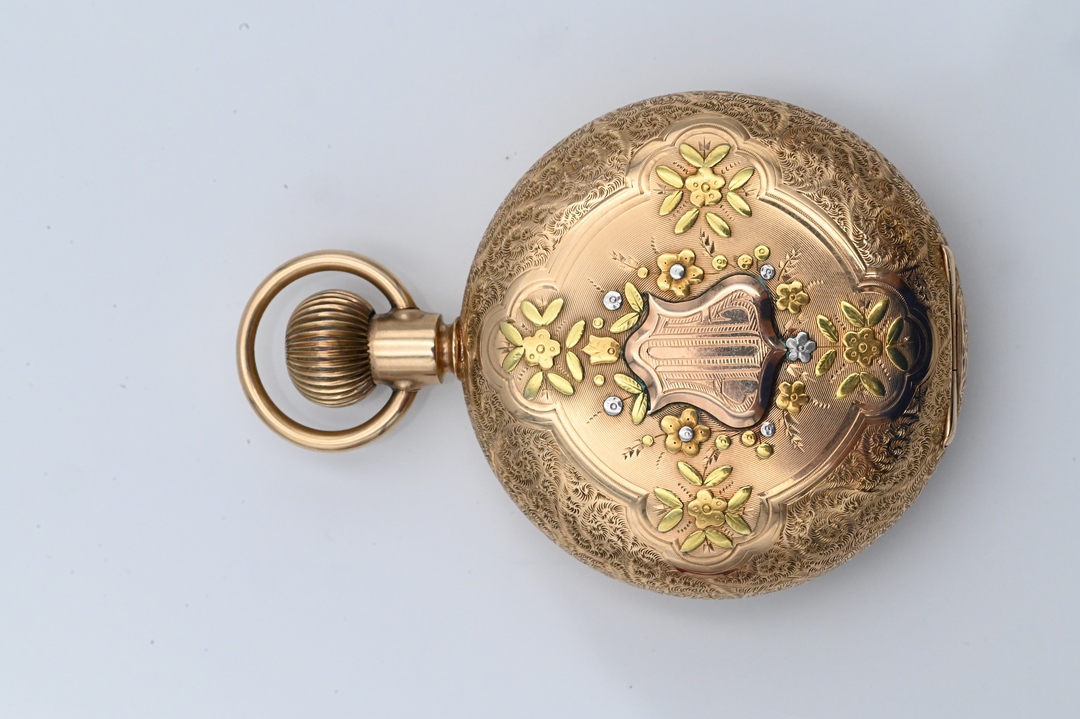 Lot 161: Waltham 14 Karat Gold Multi-Color Pocket Watch