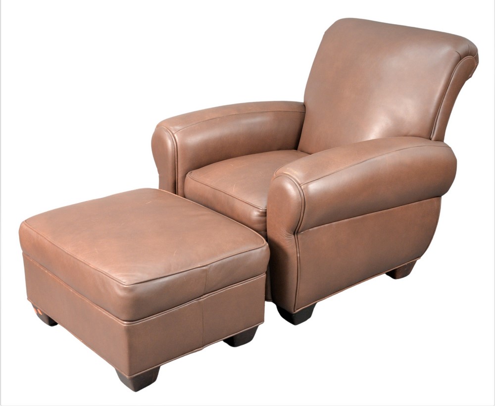 Zagaroli Classics Leather Club Chair, along with matching ottoman, height 38 inches, width 36 inches, depth 34 inches.