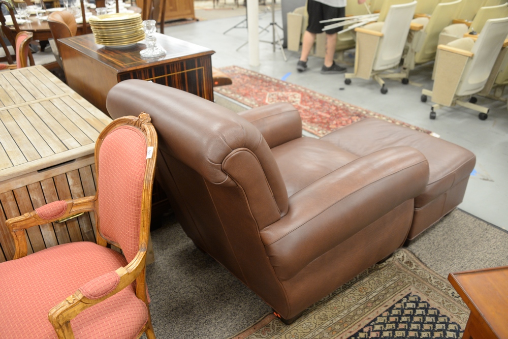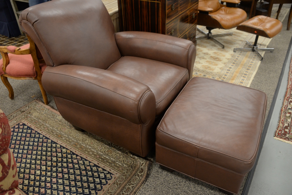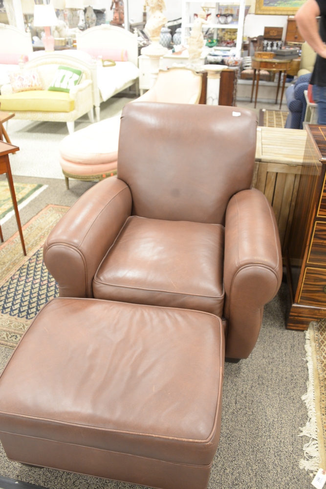 Lot 161: Zagaroli Classics Leather Club Chair, along with matching ottoman, height 38 inches, width 36 inches, depth 34 inches.