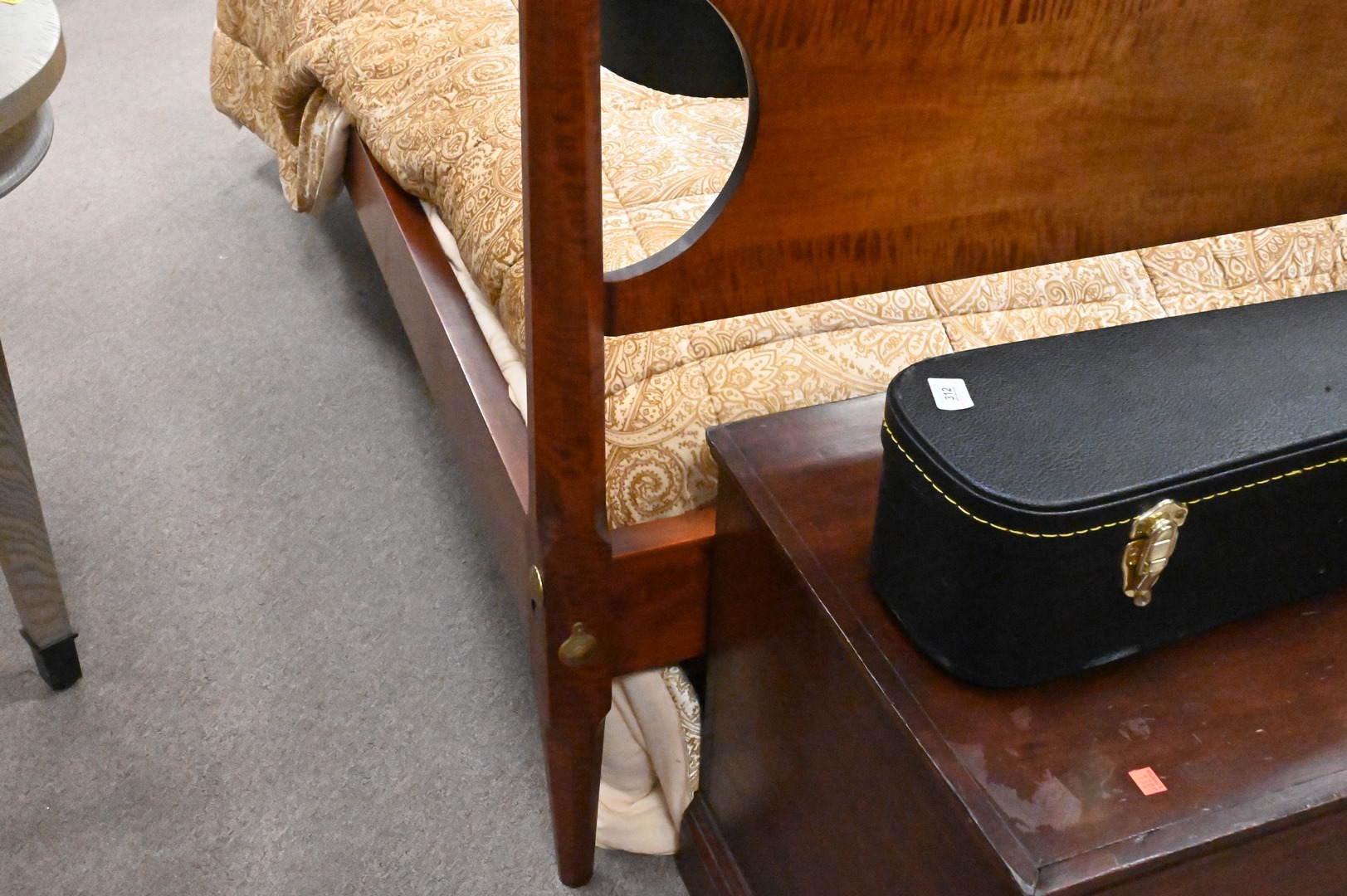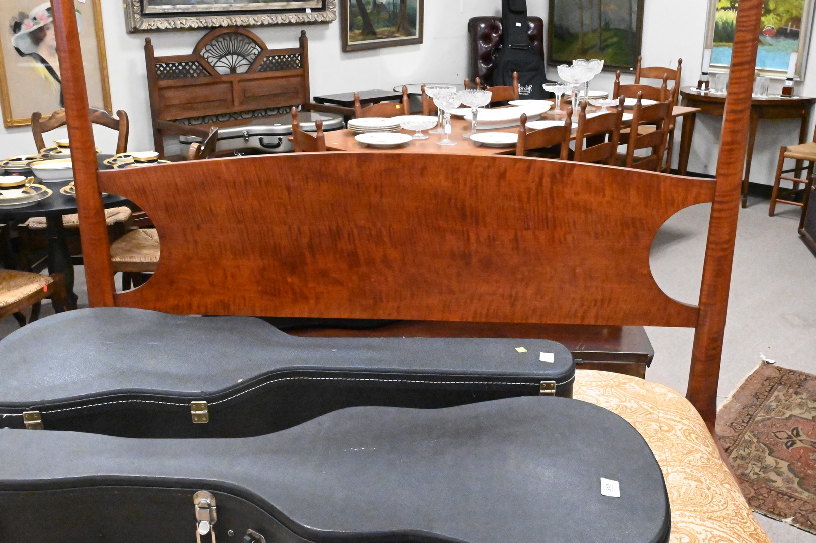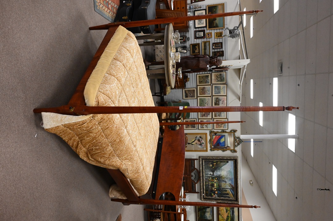 Benchmade Tiger Maple Four Post Full Size Bed, height 84 inches, total width 60 inches.