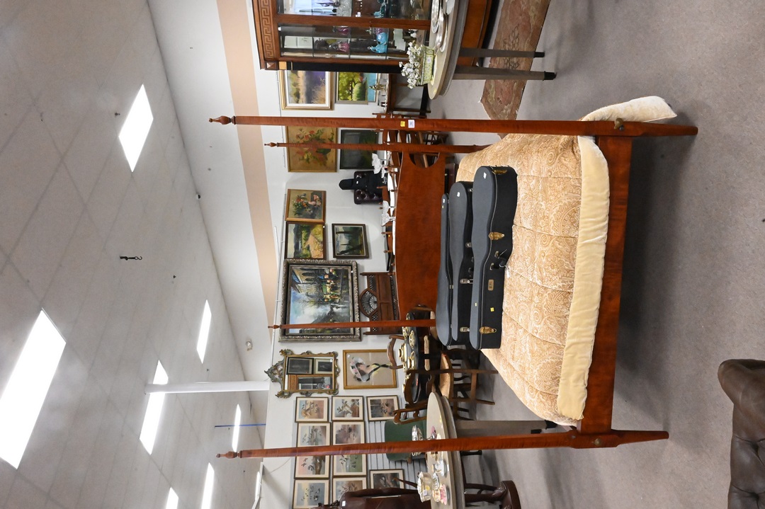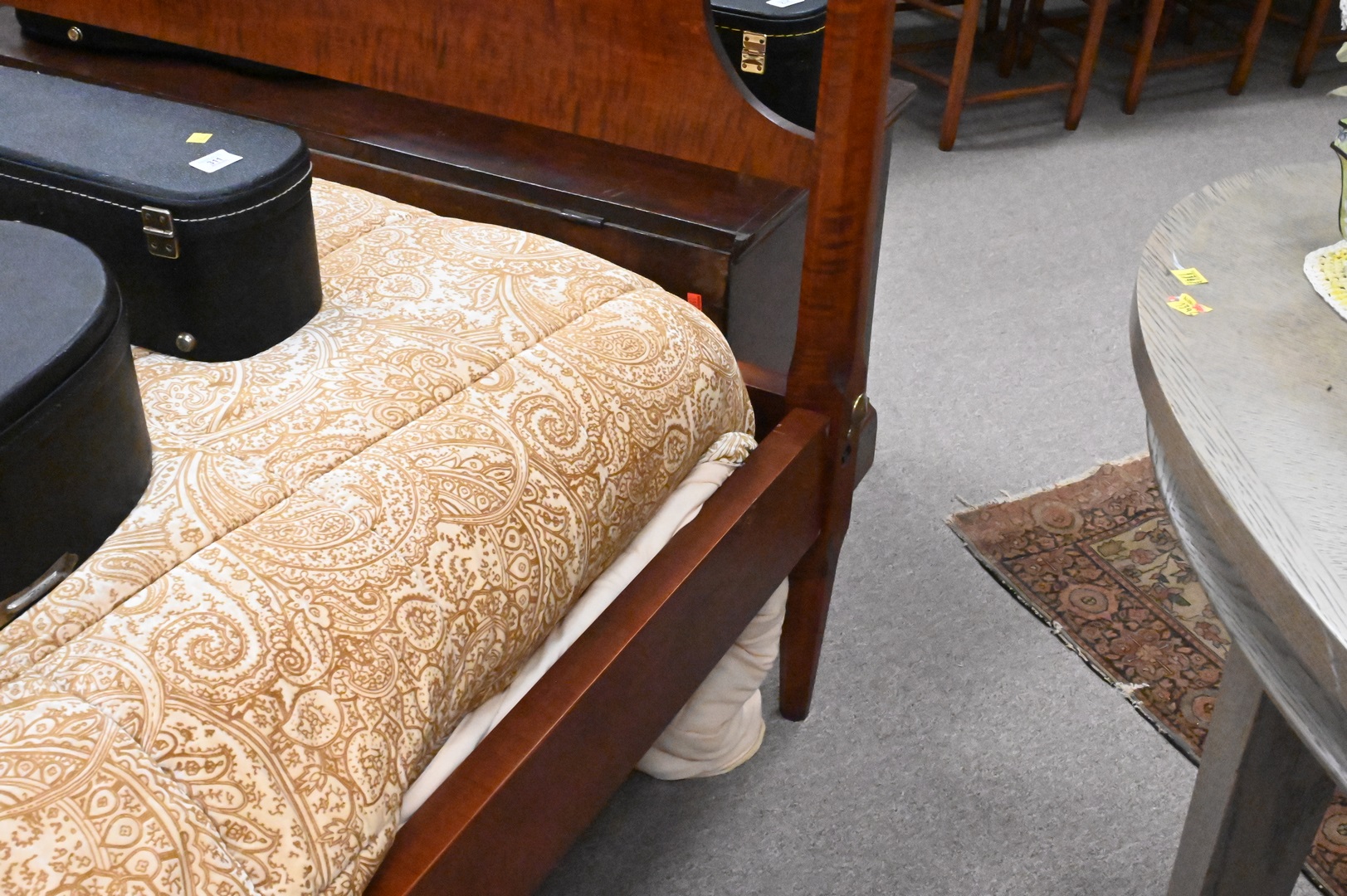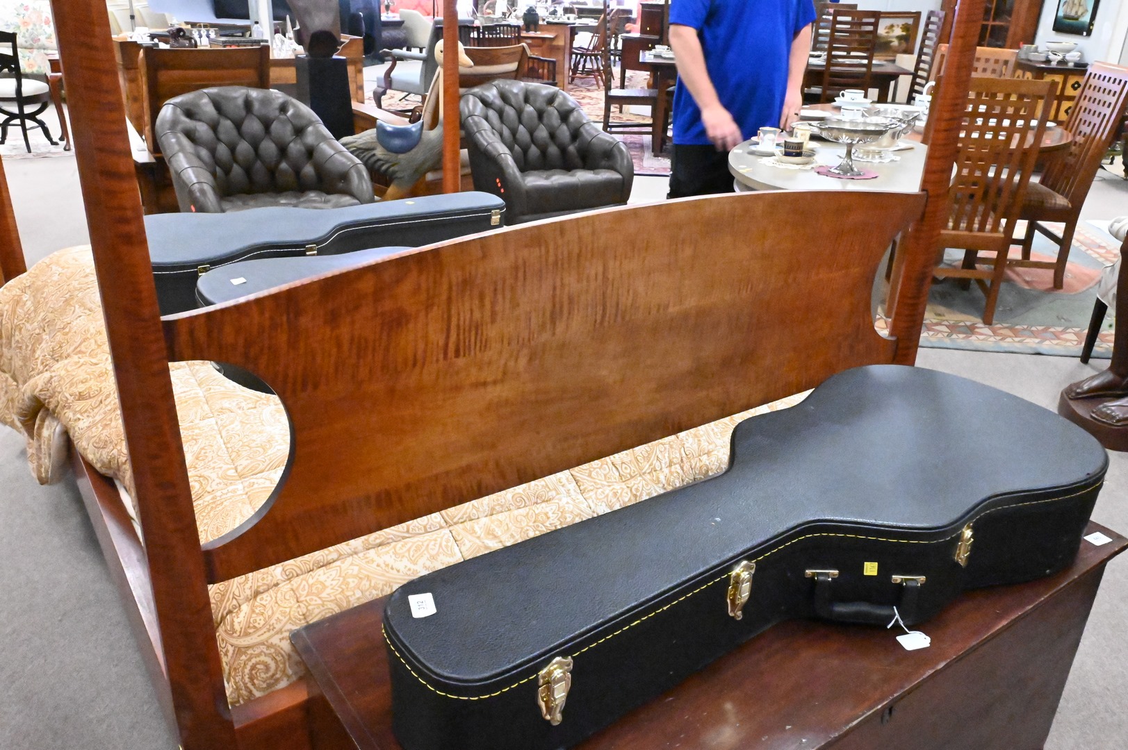 Benchmade Tiger Maple Four Post Full Size Bed, height 84 inches, total width 60 inches.